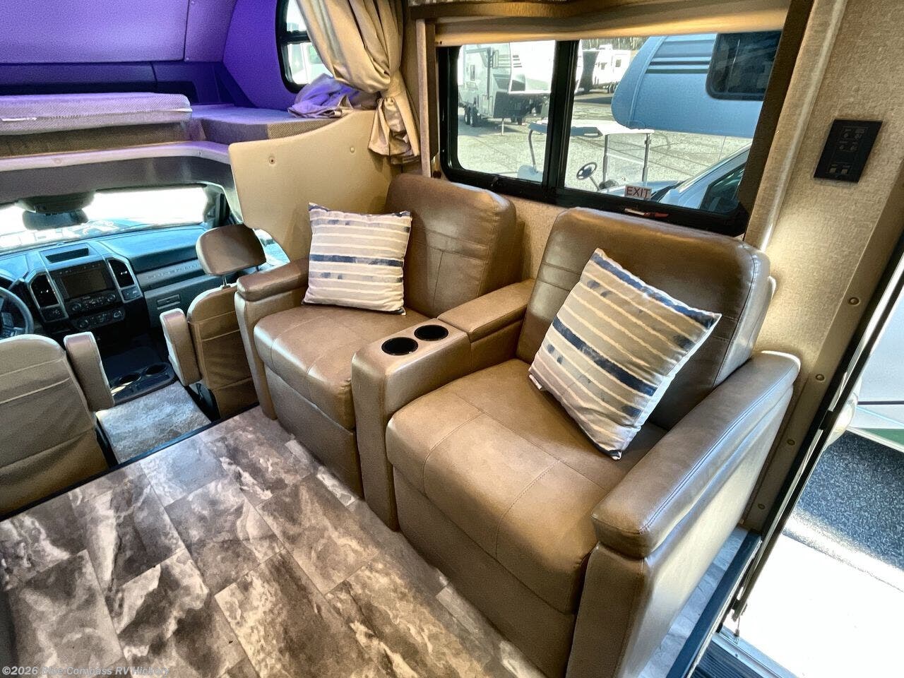 The Omni Super C diesel motorhome by Thor Motor Coach starts with a durable welded tubular steel floor, vacu-bond laminated roof, walls, and floors with block foam insulation, and a full-body paint package with gel-coat sidewalls. Each model includes either a F550 or F600 Power Stroke 4 x 4 Turbo Diesel engine that will allow you to maneuver tougher terrain when the adventure calls for it. The cockpit is every captain's dream with its power adjustable driver's seat, side view and back-up camera system, heated remote exterior mirrors, and more. You can control all of your coach's functions with the RapidCamp+ multiplex wiring control system, and the Winegard ConnecT Wi-Fi extender with 4G will allow you to stay in touch with the outside world as you travel. Each model includes residential linoleum throughout, Leatherette furniture, solid surface countertops in the kitchen, and a glass shower door for that added touch of luxury. Come see all the other great features the Omni Super C diesel motorhome has to offer!