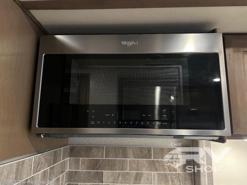 You will enjoy every minute spent in this luxurious coach that can sleep nine people each night. The overhead bunk will be perfect for the little ones, plus there are bunk beds right across from the full bath for convenience. The bunk beds include a tablet holder and USB ports, or you can convert the bunks to a wardrobe if you're not needing the extra sleeping space. This Palazzo kitchen includes everything you need to prepare home cooked meals, including an electric induction cooktop, an over-the-range convection microwave, plus a residential refrigerator for perishables. The rear private bedroom will be a place you'll love retreating to each night. Here, you'll find a Tilt-A-View inclining queen bed, a large closet, plus a 32" LED TV to watch movies in bed. There is even a stacked washer and dryer that will make going full-time easier than ever!