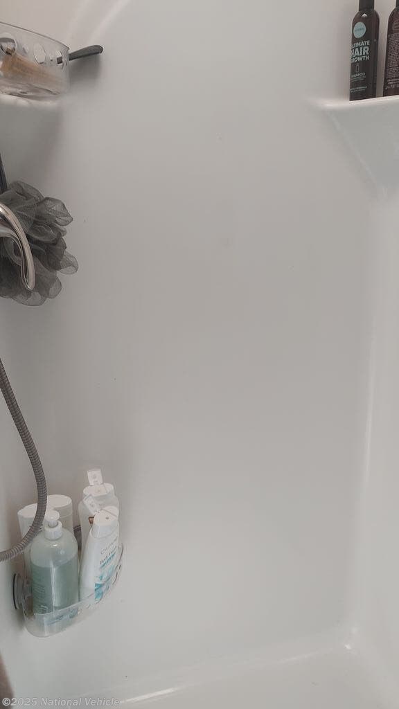 The private rear bedroom is upgraded with a Wilderness RV king-size mattress, providing exceptional comfort and support. The mid-coach half bath adds convenience for guests, while the full rear bath offers privacy and functionality.