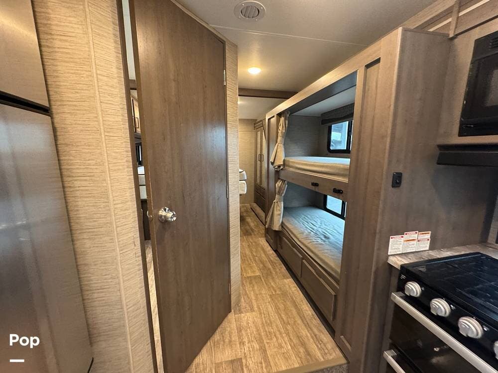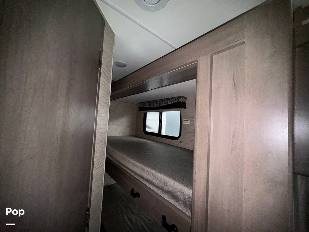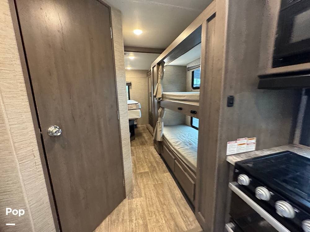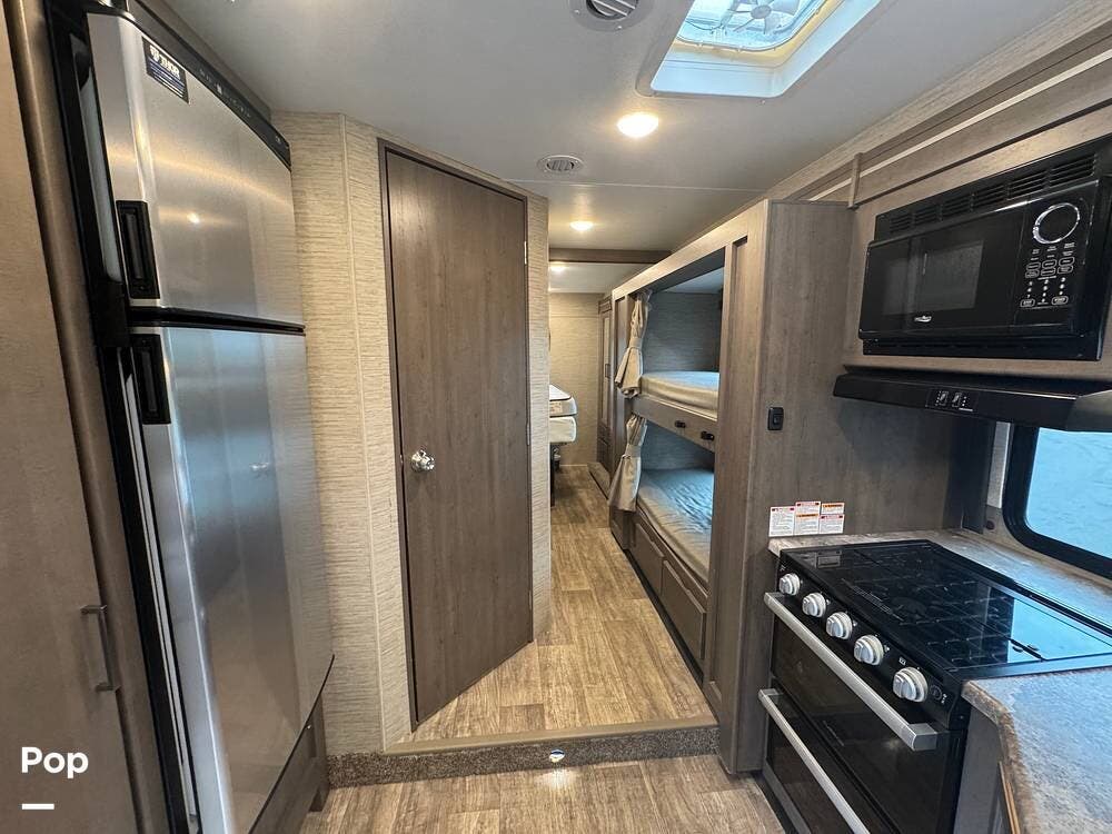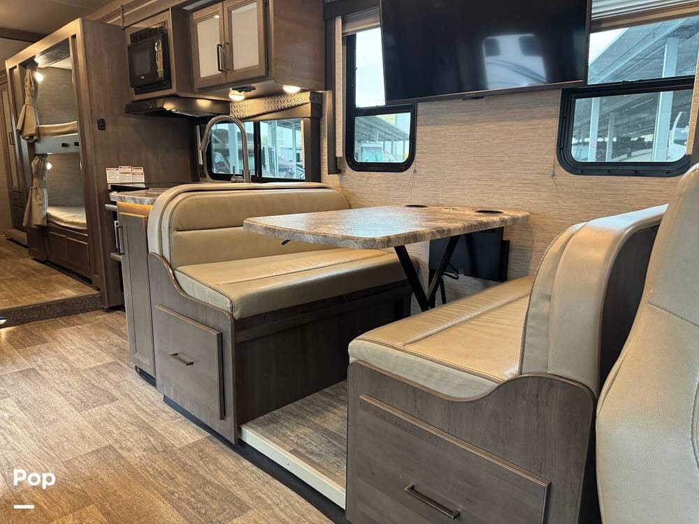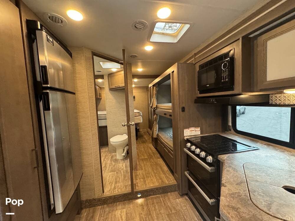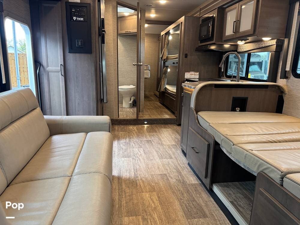 This beautifully maintained 2023 Quantum SL31 SE by Thor Motor Coach is the perfect family-friendly Class C with a highly sought-after bunk bed floorplan. It features a private rear queen bedroom, dedicated hallway bunk beds, a cab-over bunk, and convertible dinette and sofa--comfortably sleeping up to 8 without having to convert your entire living space each night. The large slide-out creates an open, spacious feel, while the fully equipped kitchen includes a 3-burner cooktop with oven, microwave, large refrigerator, solid surface countertops, and ample storage. Enjoy a full bathroom with spacious shower, onboard generator, and a power awning with LED lighting. Built on the reliable Ford E-Series chassis with a powerful V8 engine, this coach is clean, lightly used, and road-trip ready.