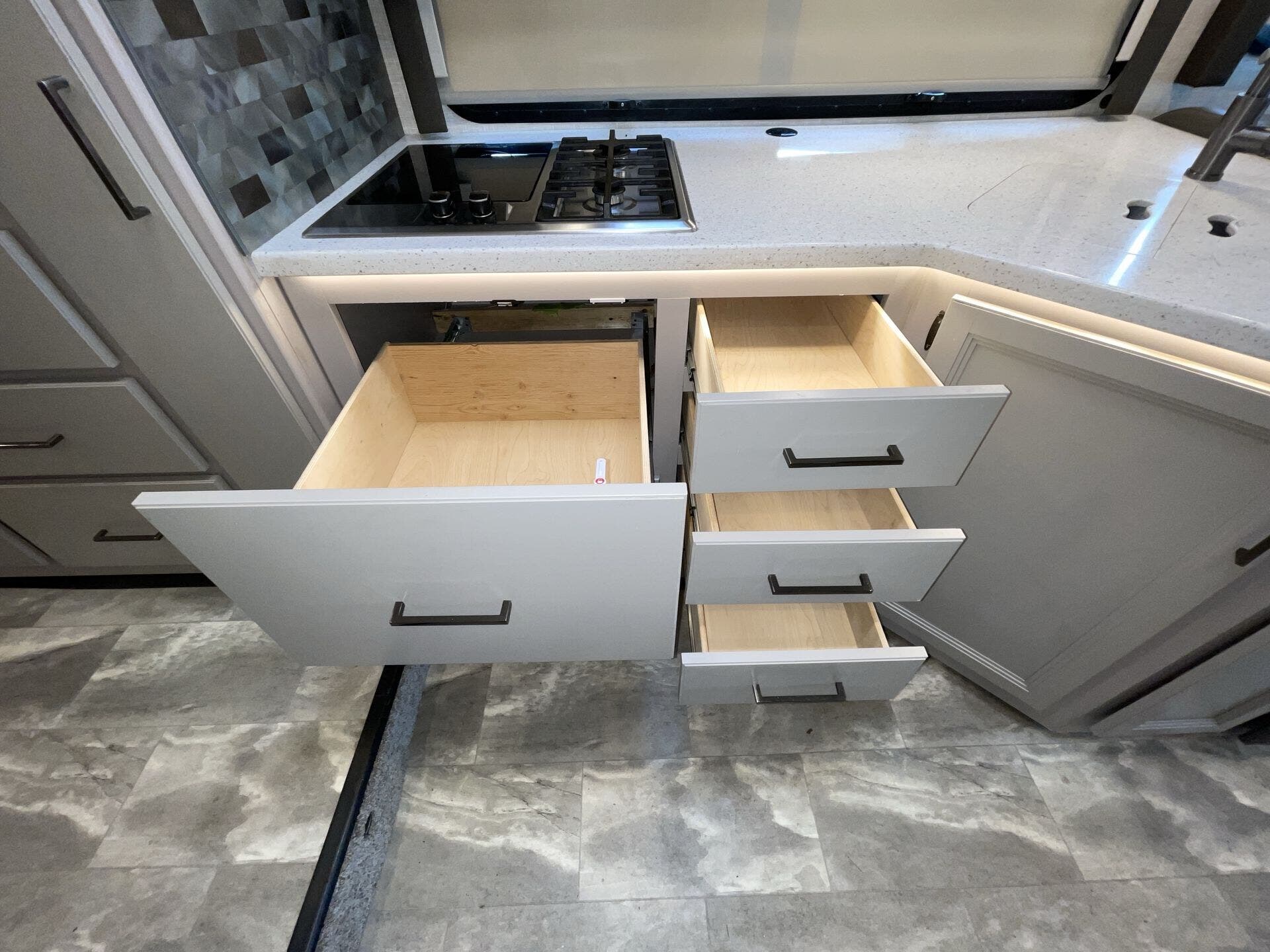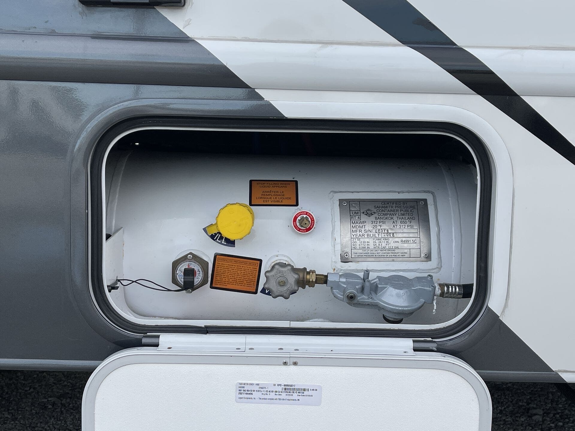 Backup Camera, CO Detector, Fire Extinguisher, LED Lights, LP Detector, Propane, Smoke Detector, TV -