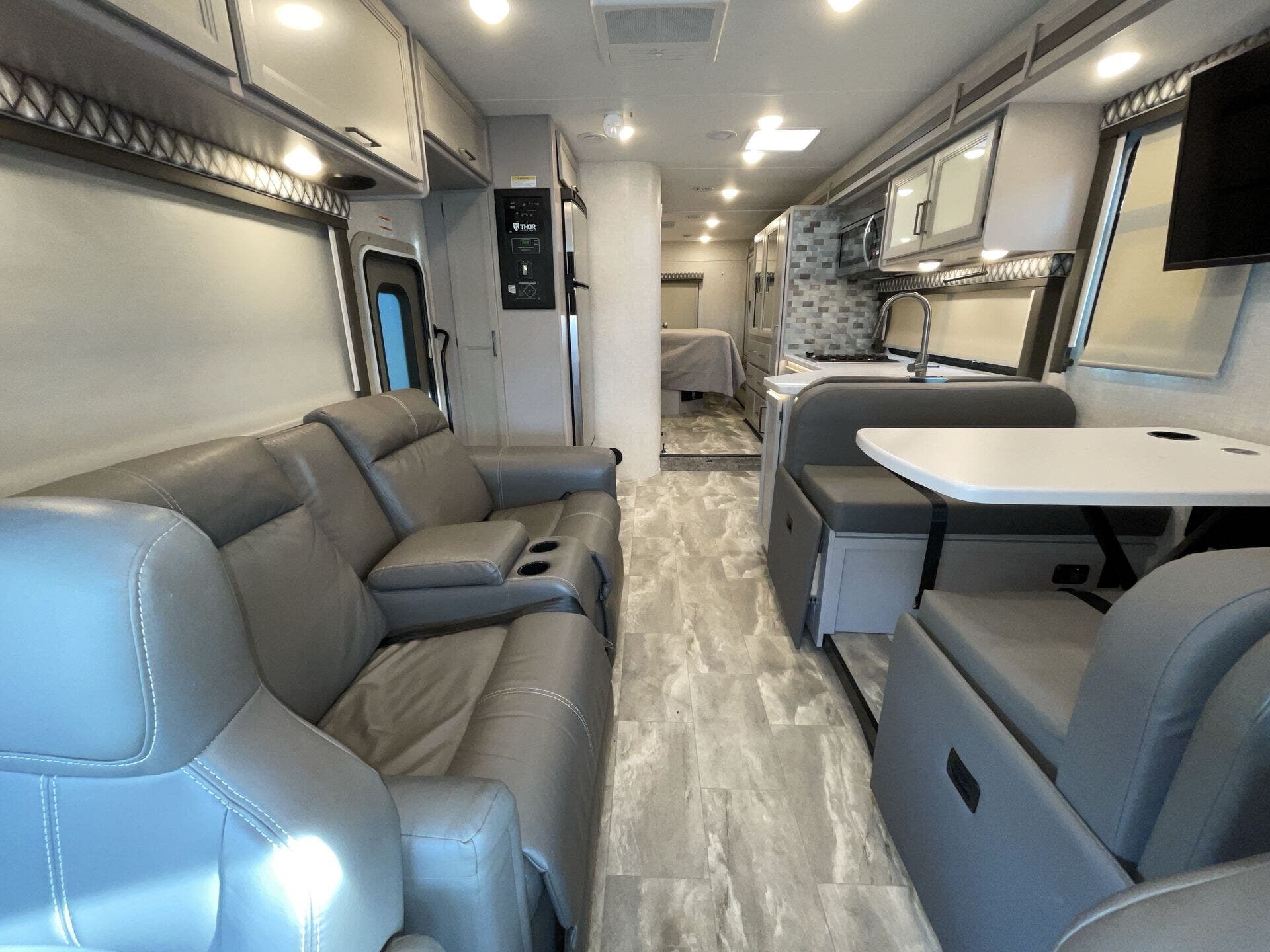 The 2023 Thor Quantum WS31 is one of those Class C rigs that feels comfortable right from the first step inside. The front living layout gives you a legit space to relax — plenty of seating and a good flow so you’re not bumping into things. It’s big enough to feel roomy, but you don’t dread driving it like you might with a Class A.