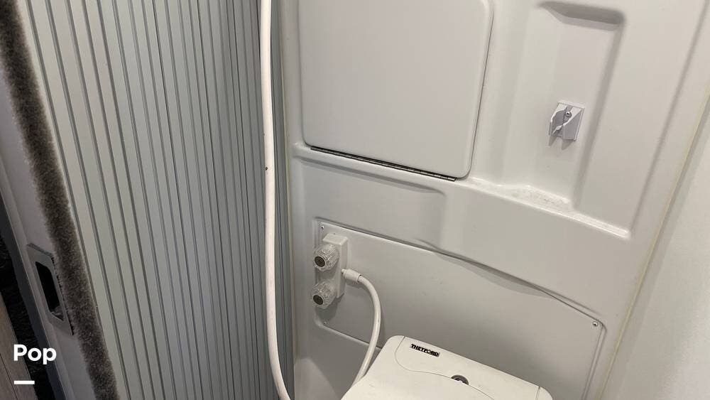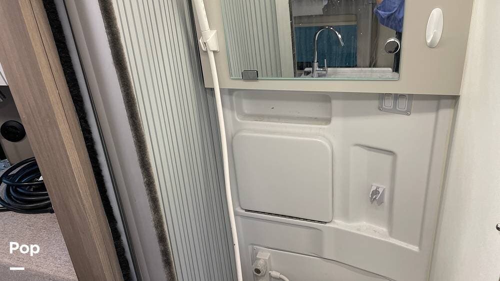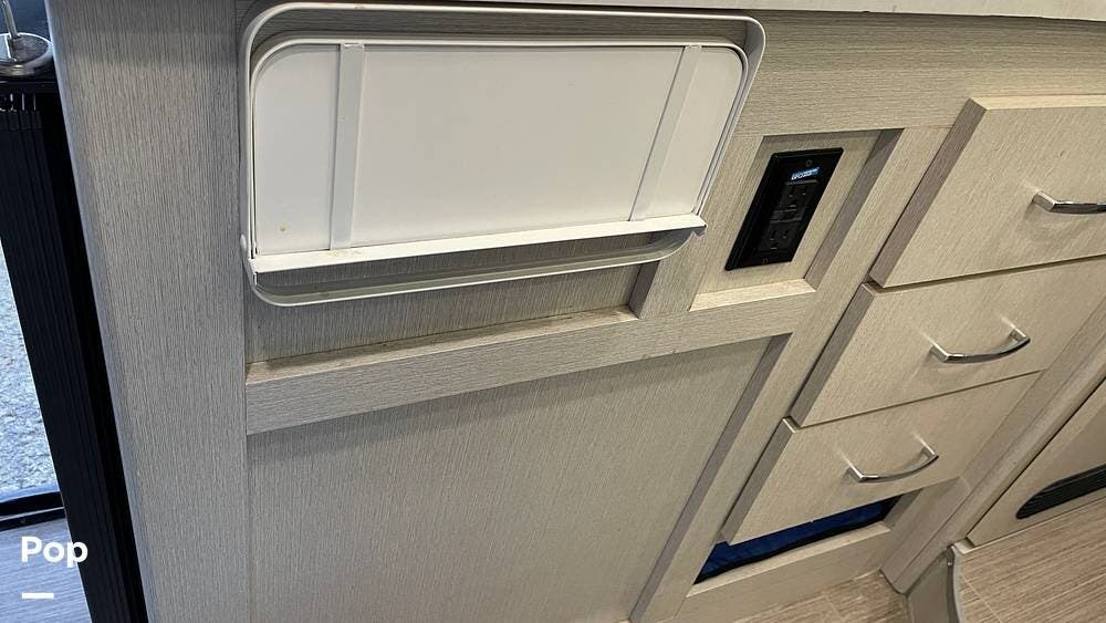 Inside, this unit features a thoughtfully designed interior that maximizes space without sacrificing style or functionality. The contemporary dcor, high-quality finishes, and abundant natural light create a welcoming environment that feels both open and cozy. The versatile sleeping area provides a comfortable place to rest after a long day of travel, while smart storage solutions keep gear organized and out of the way.