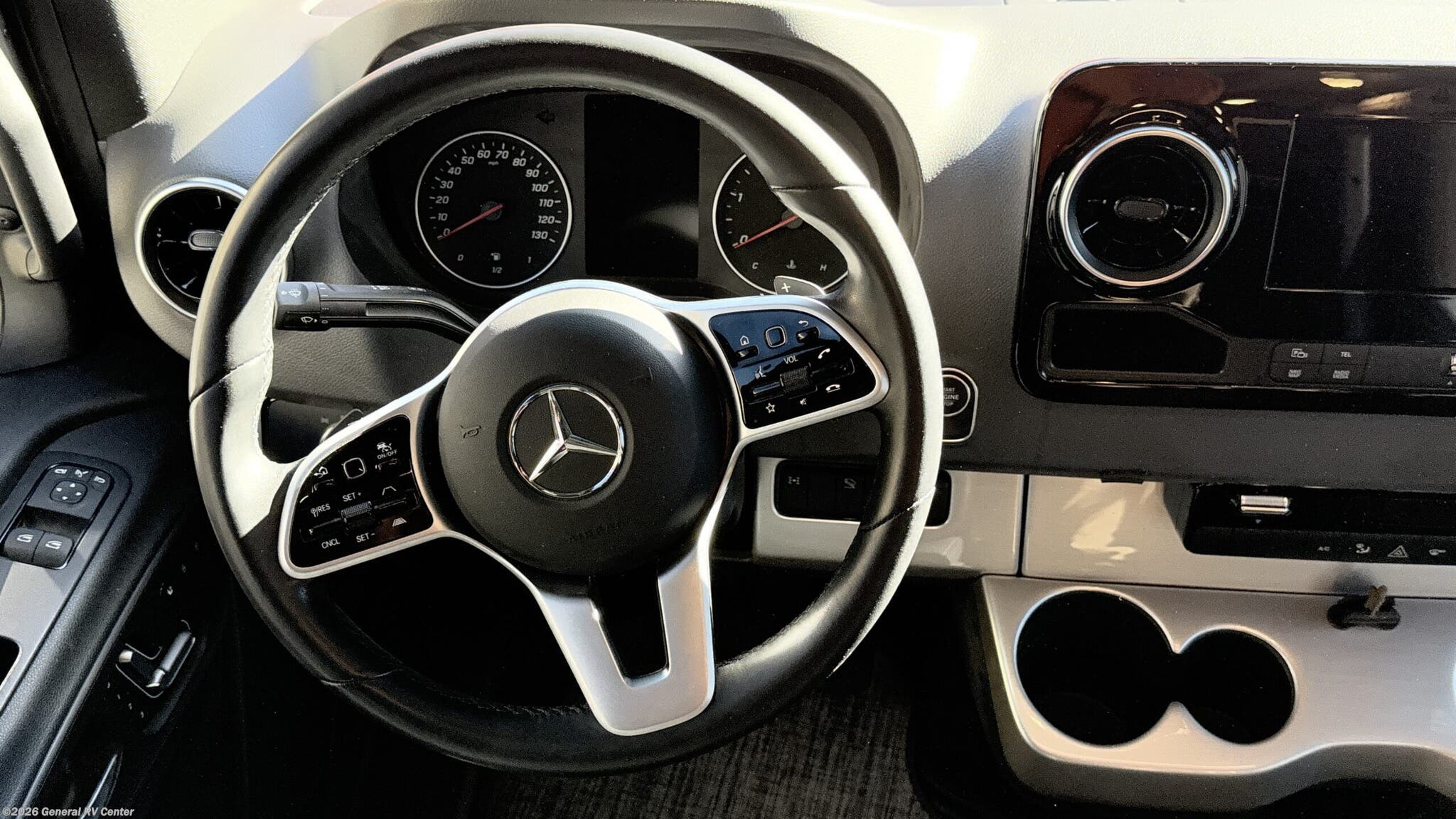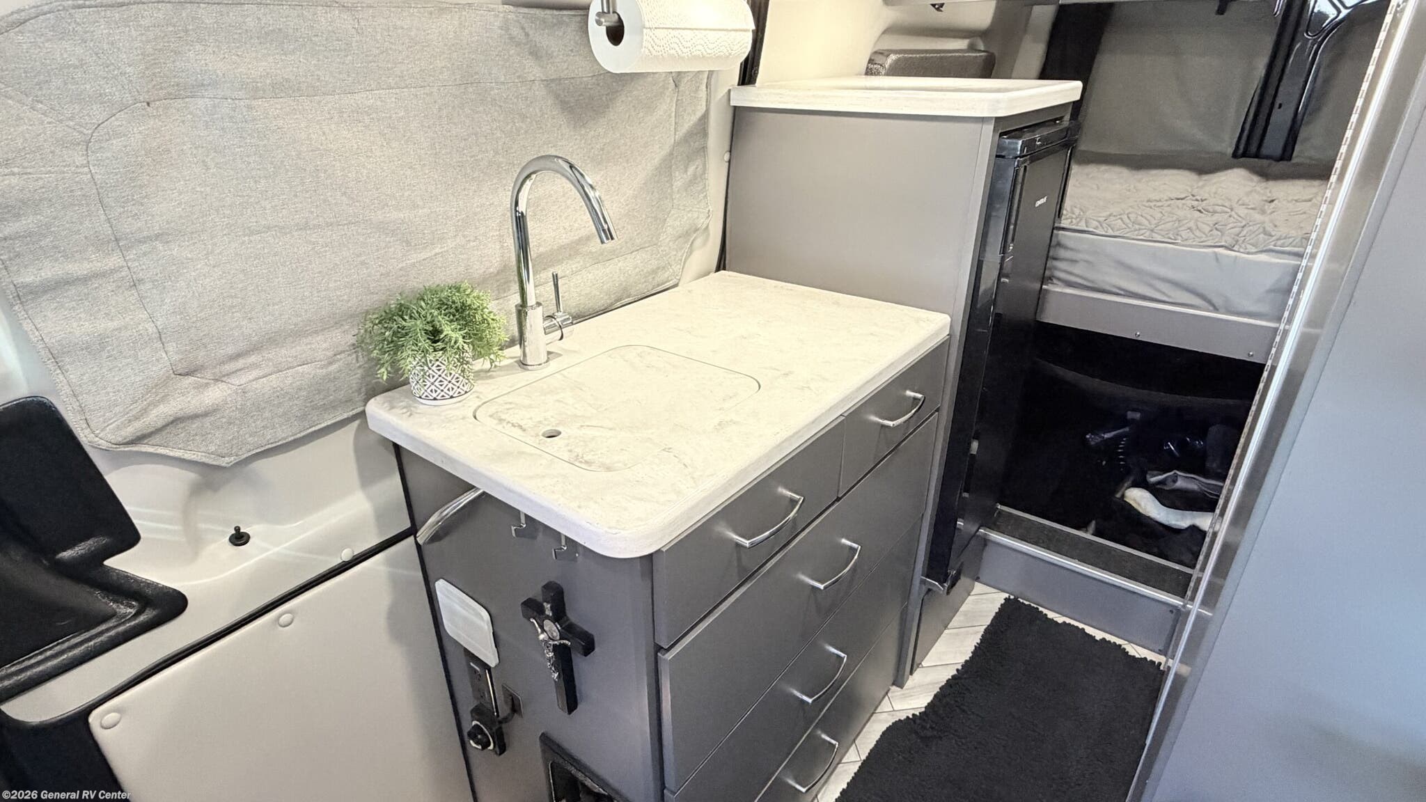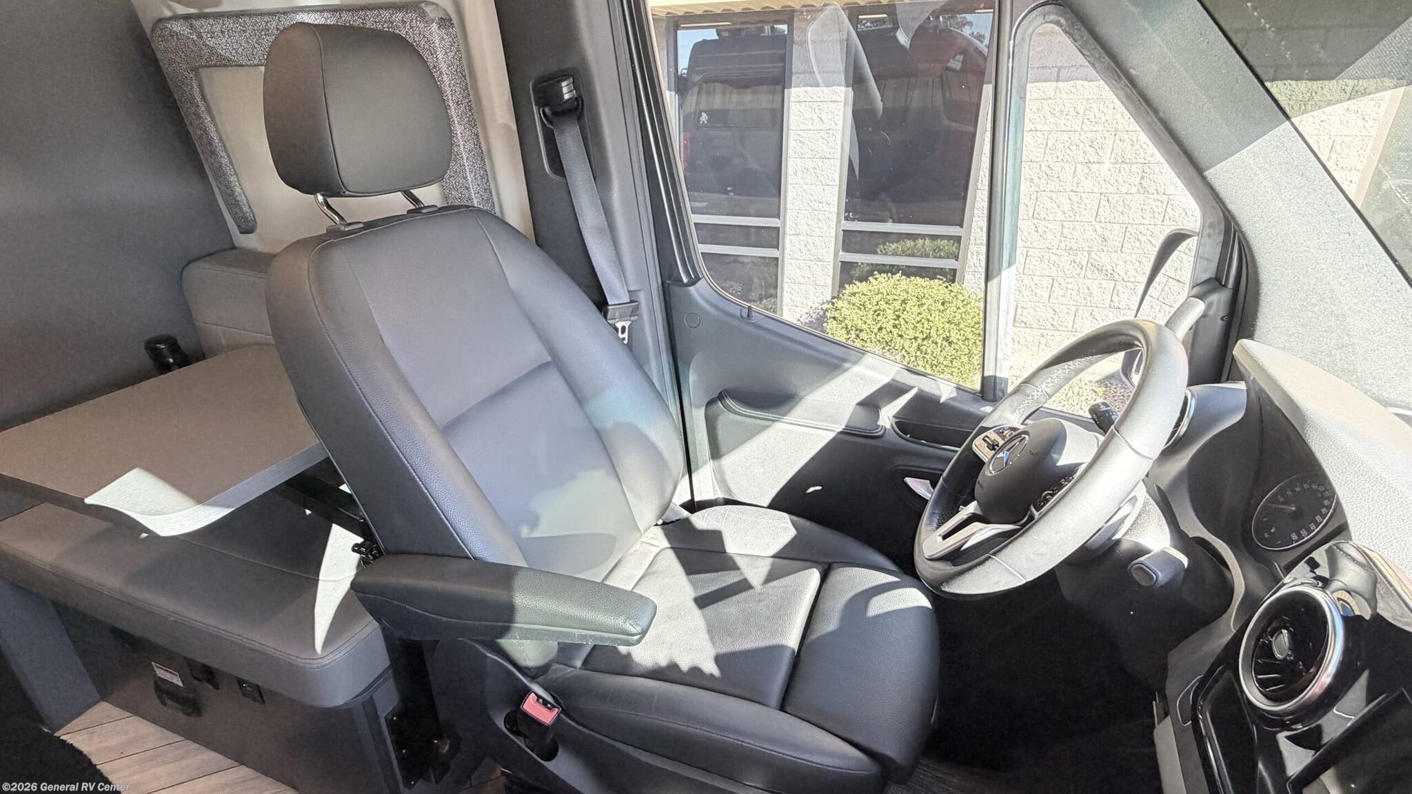 Step into adventure with the 2023 Thor Motor Coach Sanctuary 19L. This compact yet versatile camper van, built on the robust Mercedes-Benz Sprinter 2500 chassis, is designed for those who crave the open road. Its sleek 19.67-foot length makes it easy to maneuver through city streets and scenic byways alike, while the powerful V6 diesel engine ensures a smooth and efficient drive. The Sanctuary 19L offers a cozy full-size bed, perfect for winding down after a day of exploration. The interior layout maximizes space with a well-appointed center kitchen featuring a two-burner cooktop, compact refrigerator, and microwave, making meal preparation a breeze. Inside, the thoughtful design continues with swivel chairs and a removable table, creating a flexible living area for dining or relaxing. The center bath, equipped with a shower curtain, offers convenience without compromising on space. Enjoy the outdoors with the 10.5 ft. powered retractable awning, perfect for shaded relaxation. With a fresh water capacity of 22 gallons and a fuel capacity of 24.8 gallons, this RV is ready for extended journeys. Whether you're a weekend warrior or a full-time nomad, the Thor Sanctuary 19L is your perfect travel companion. For more details, visit your nearest General RV dealership.