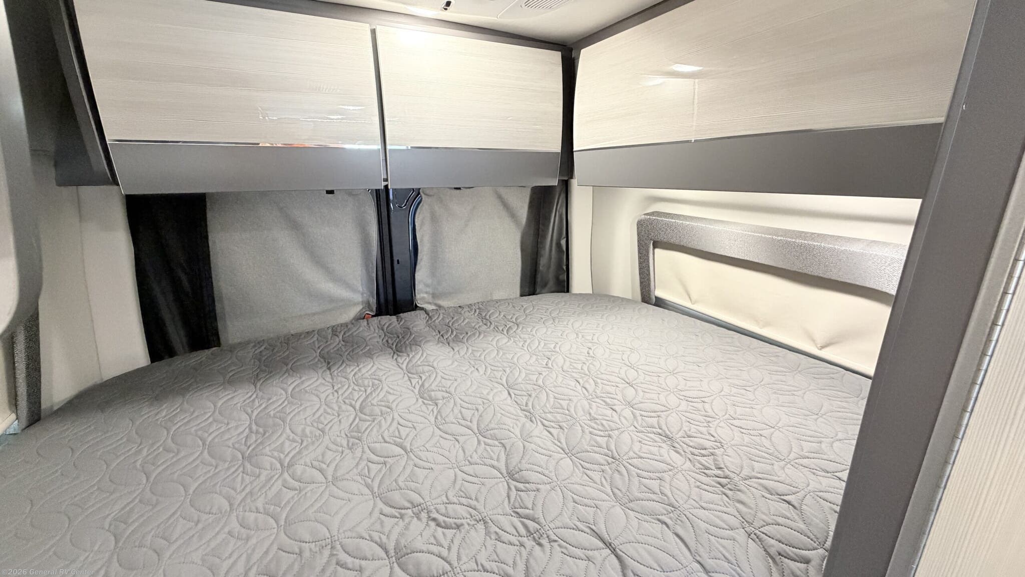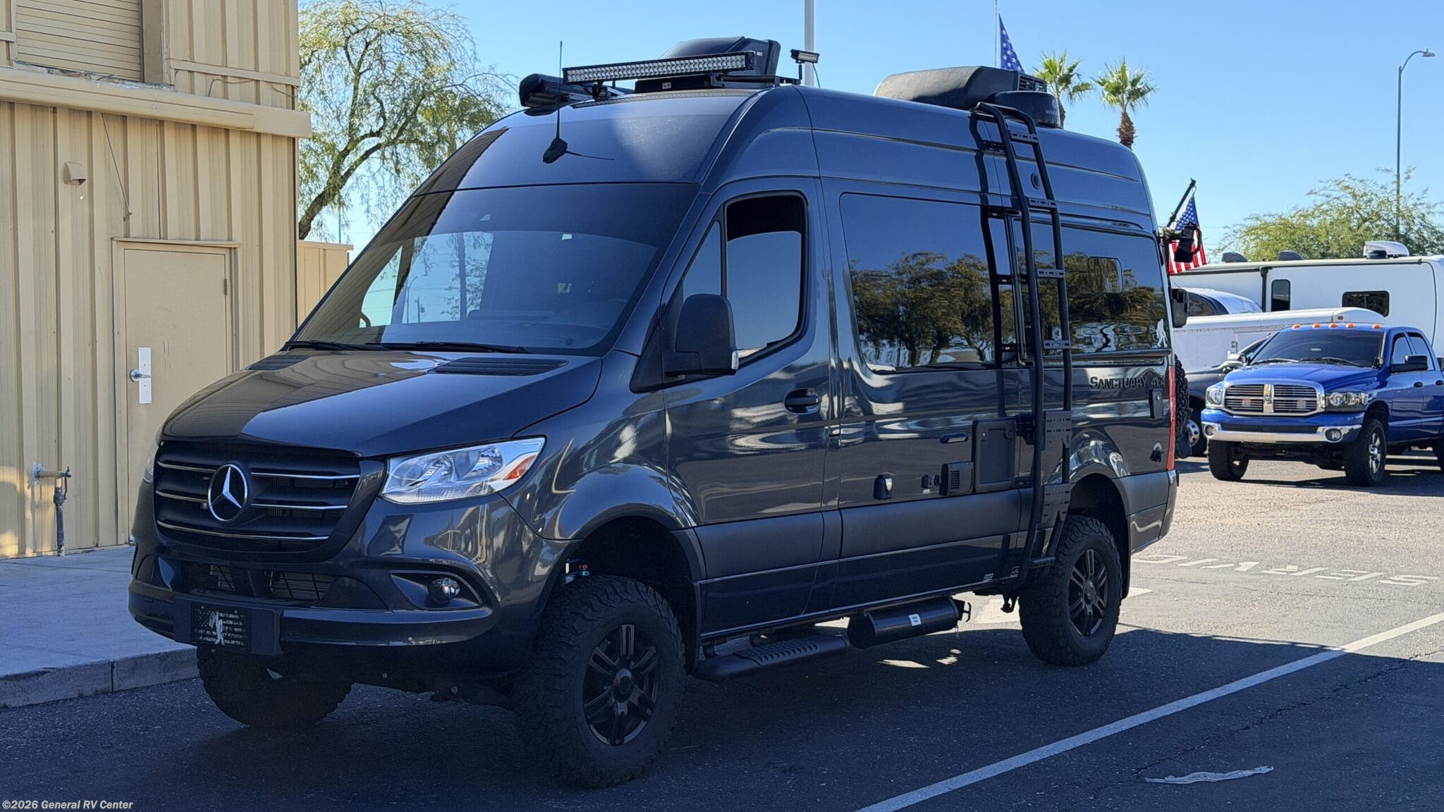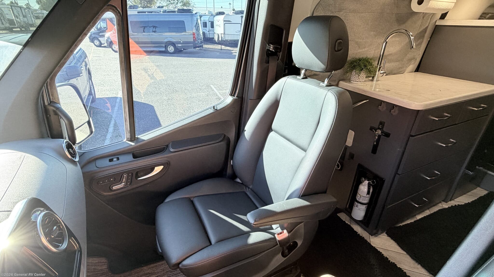Step into adventure with the 2023 Thor Motor Coach Sanctuary 19L. This compact yet versatile camper van, built on the robust Mercedes-Benz Sprinter 2500 chassis, is designed for those who crave the open road. Its sleek 19.67-foot length makes it easy to maneuver through city streets and scenic byways alike, while the powerful V6 diesel engine ensures a smooth and efficient drive. The Sanctuary 19L offers a cozy full-size bed, perfect for winding down after a day of exploration. The interior layout maximizes space with a well-appointed center kitchen featuring a two-burner cooktop, compact refrigerator, and microwave, making meal preparation a breeze. Inside, the thoughtful design continues with swivel chairs and a removable table, creating a flexible living area for dining or relaxing. The center bath, equipped with a shower curtain, offers convenience without compromising on space. Enjoy the outdoors with the 10.5 ft. powered retractable awning, perfect for shaded relaxation. With a fresh water capacity of 22 gallons and a fuel capacity of 24.8 gallons, this RV is ready for extended journeys. Whether you're a weekend warrior or a full-time nomad, the Thor Sanctuary 19L is your perfect travel companion. For more details, visit your nearest General RV dealership.
