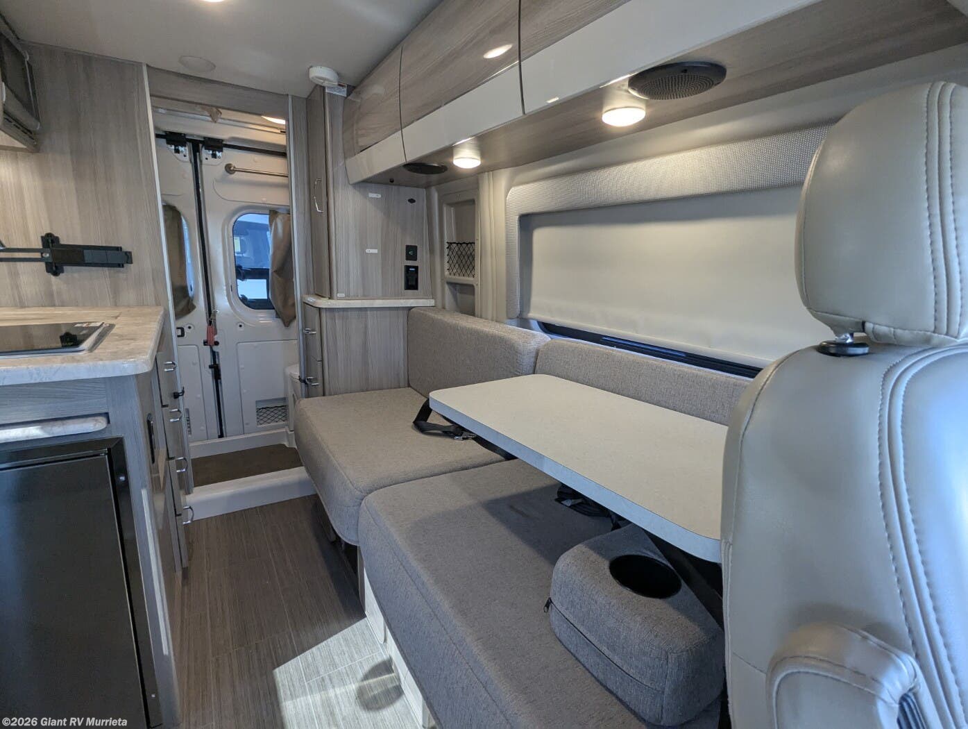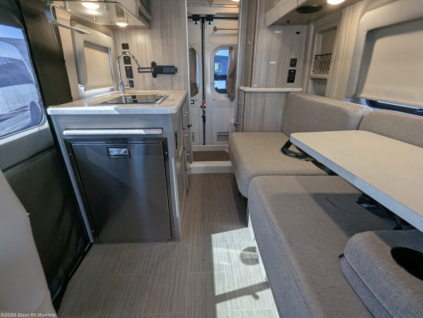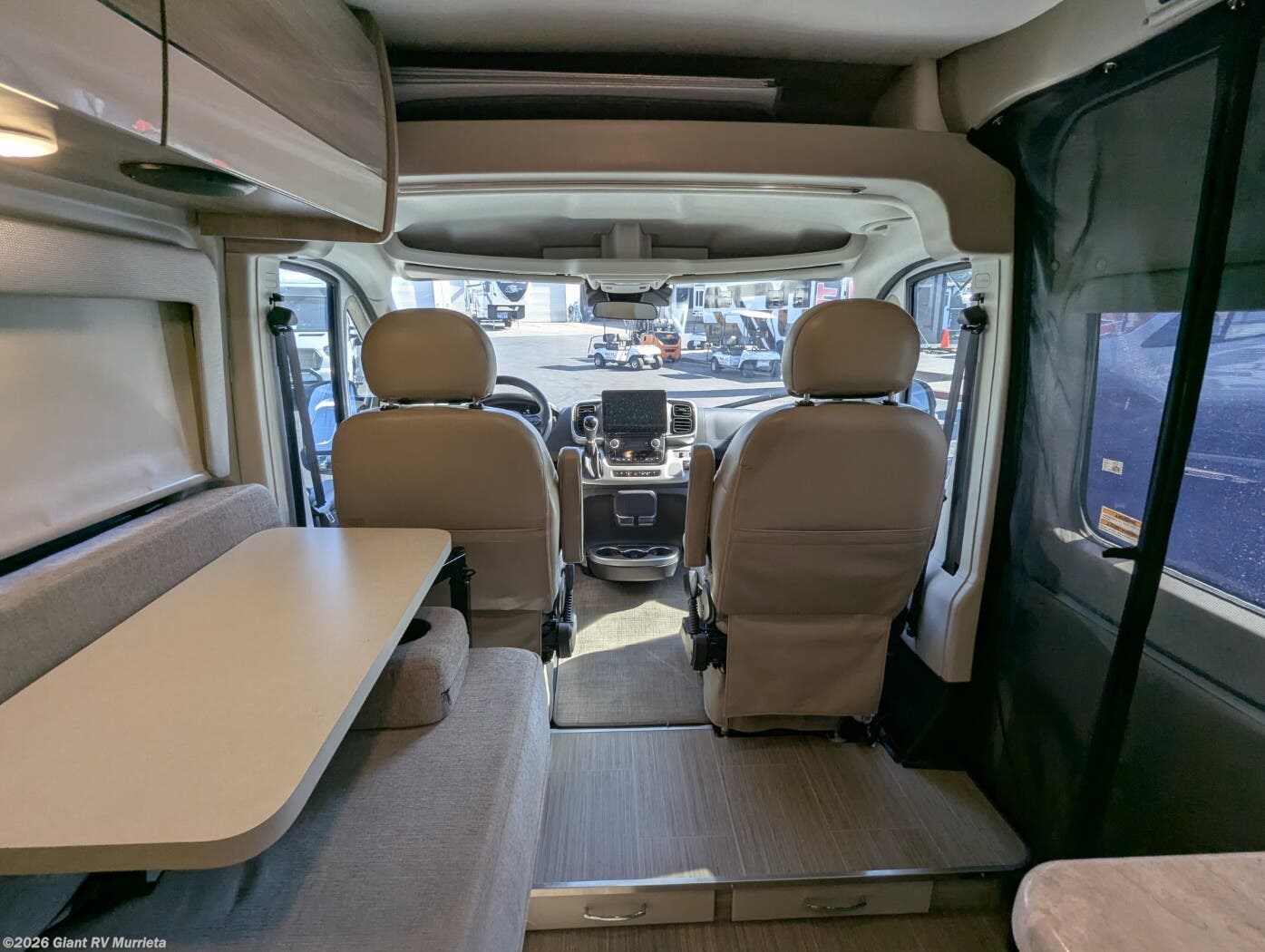 - Versatile Pull-Out Bed: Sleeps up to 2 with a rear pull-out bed (54" x 75"), plus swivel cab seats and a convertible dinette for flexible living space.
