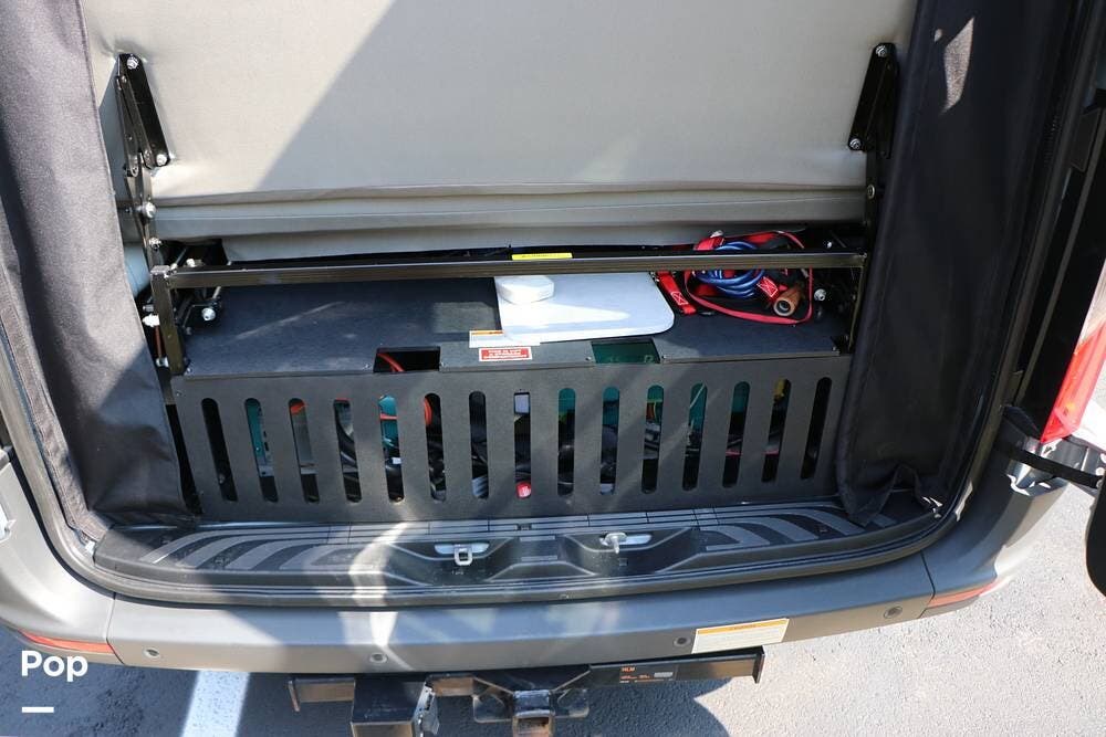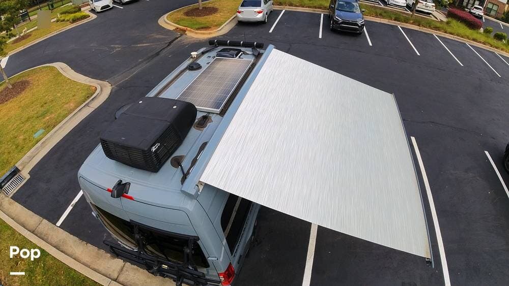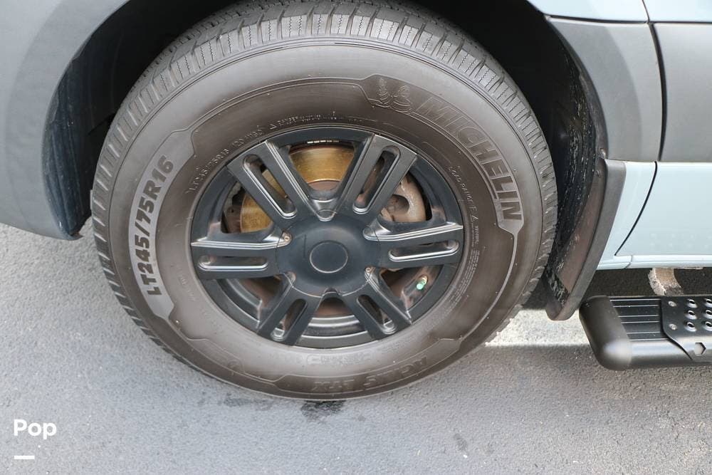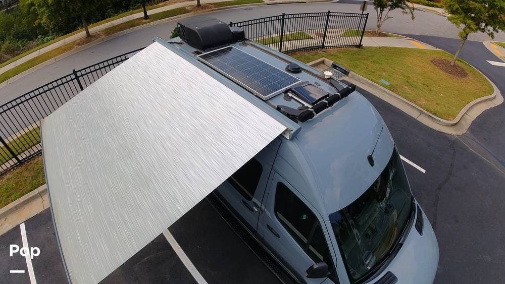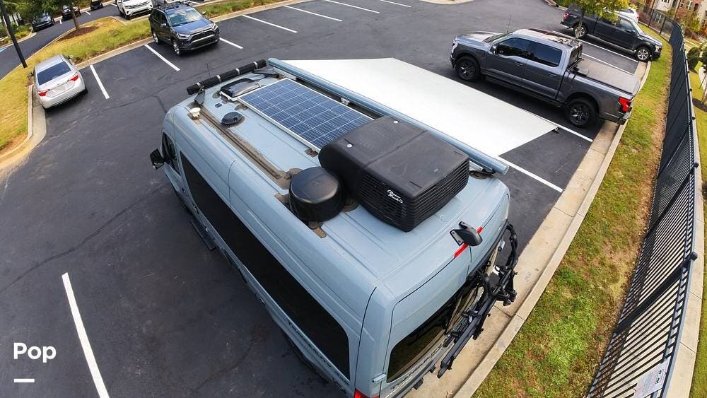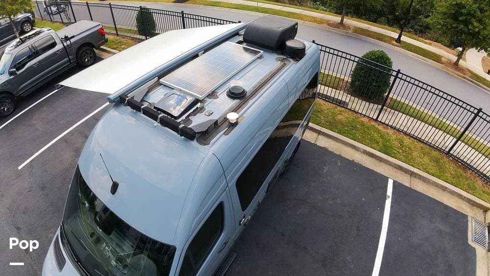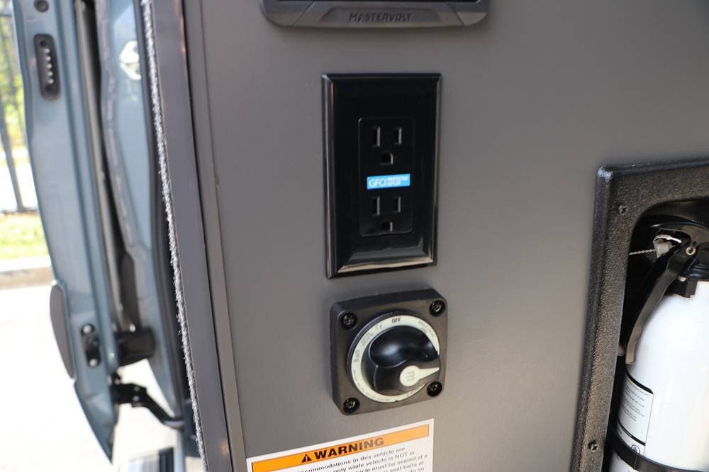 The unit has a Coleman Mach Q roof-mounted AC unit and a Truma Hot Water Heater for on-demand hot water. The large solar panel mounted on the roof powers the solar converter, keeping the house batteries charged and ready for use. The alternator also charges the house batteries while traveling, so you can rest assured that you'll have power for operating all the systems upon arrival.