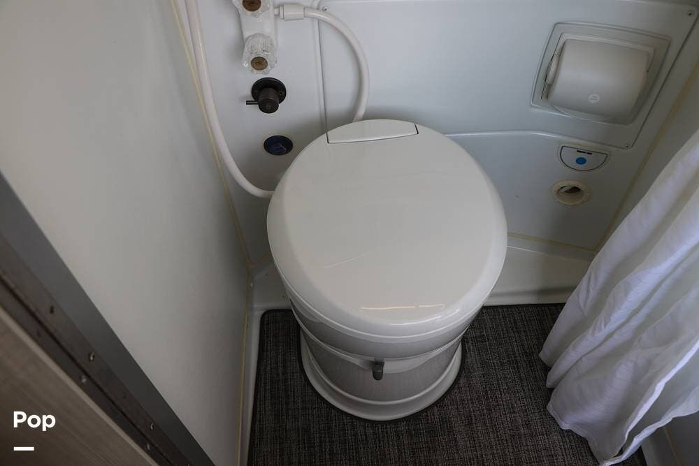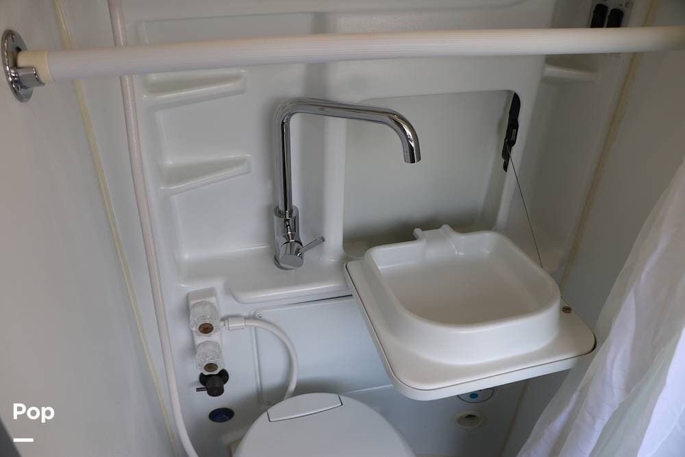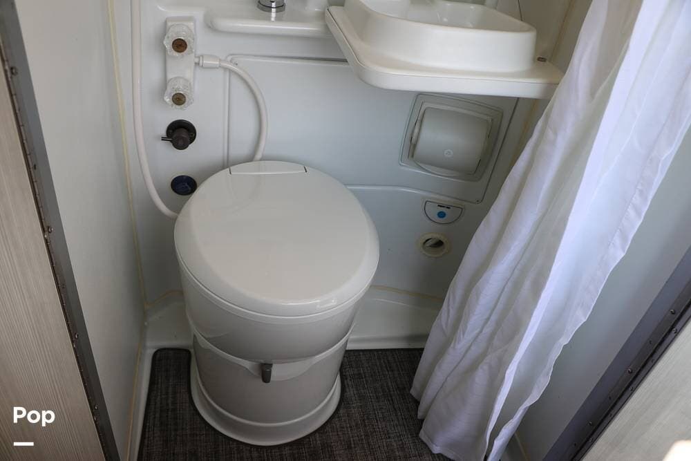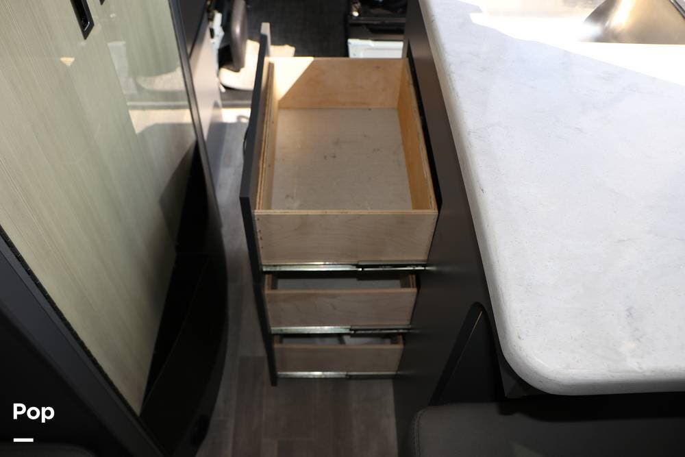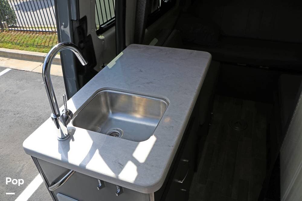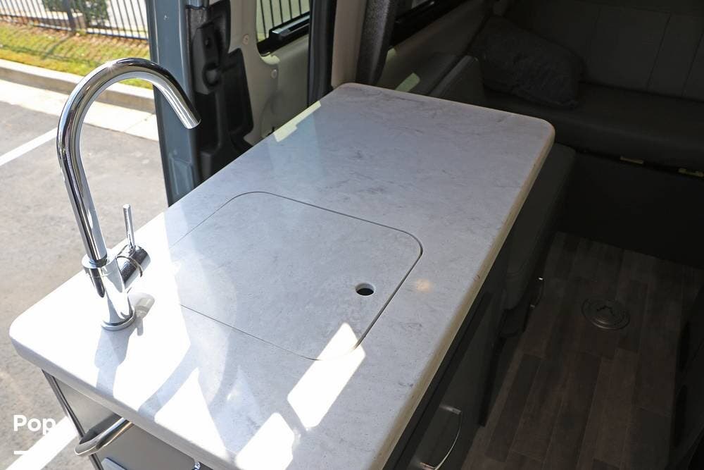 The unit has a Coleman Mach Q roof-mounted AC unit and a Truma Hot Water Heater for on-demand hot water. The large solar panel mounted on the roof powers the solar converter, keeping the house batteries charged and ready for use. The alternator also charges the house batteries while traveling, so you can rest assured that you'll have power for operating all the systems upon arrival.