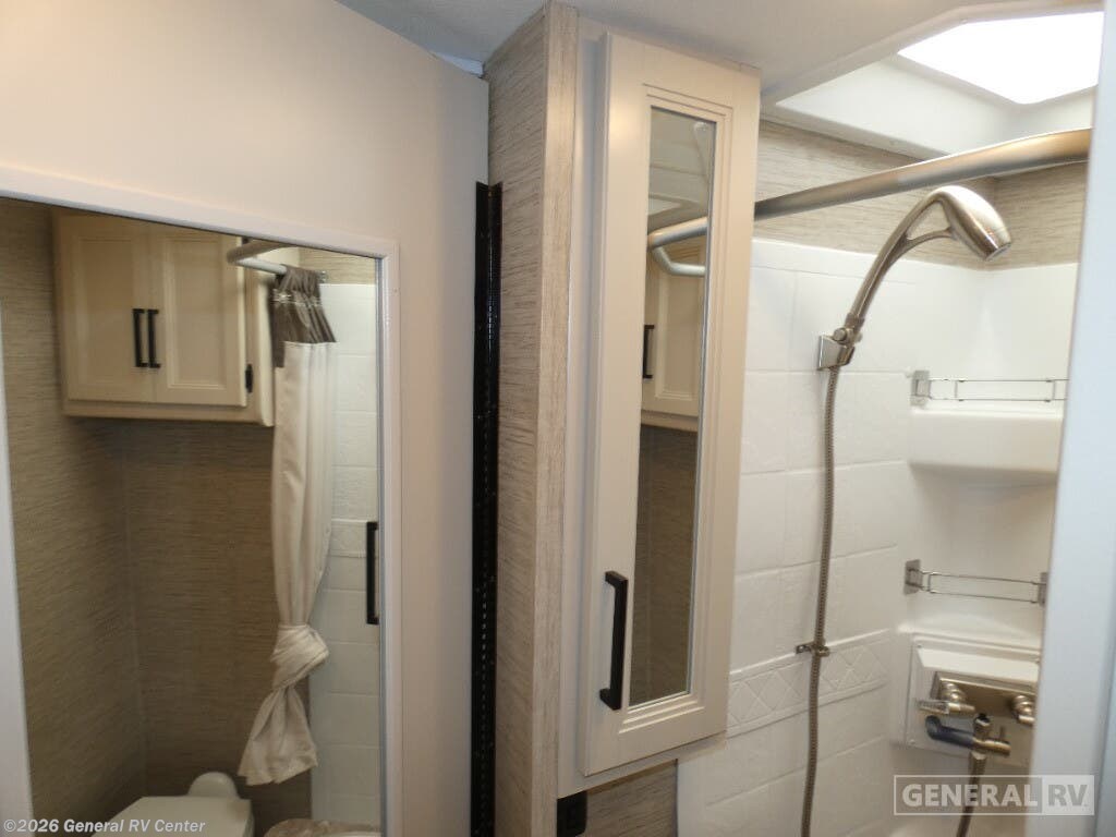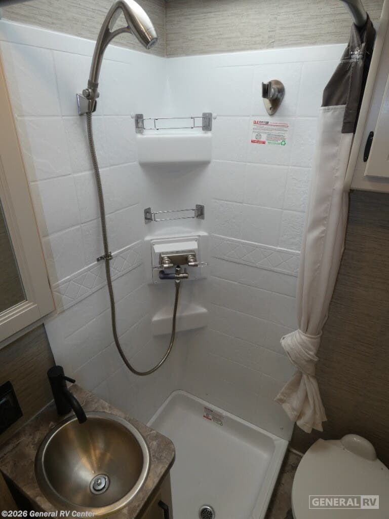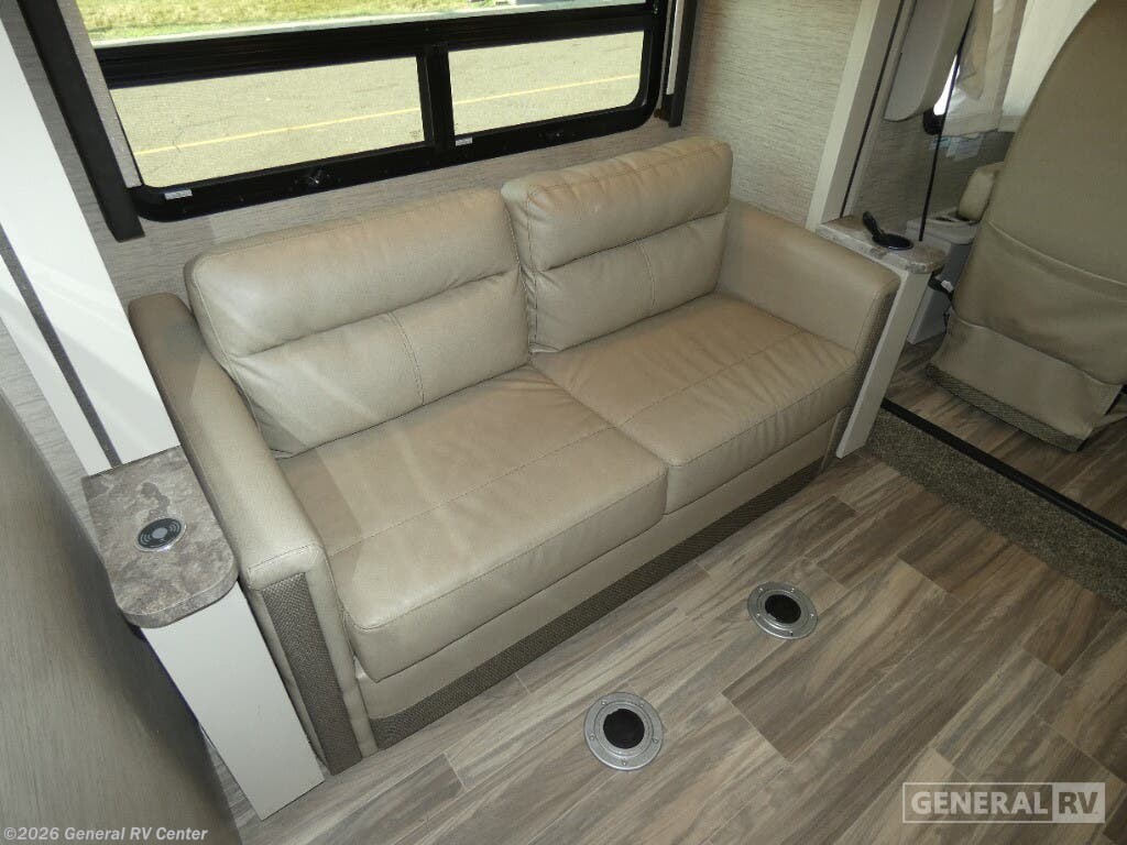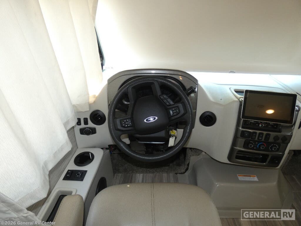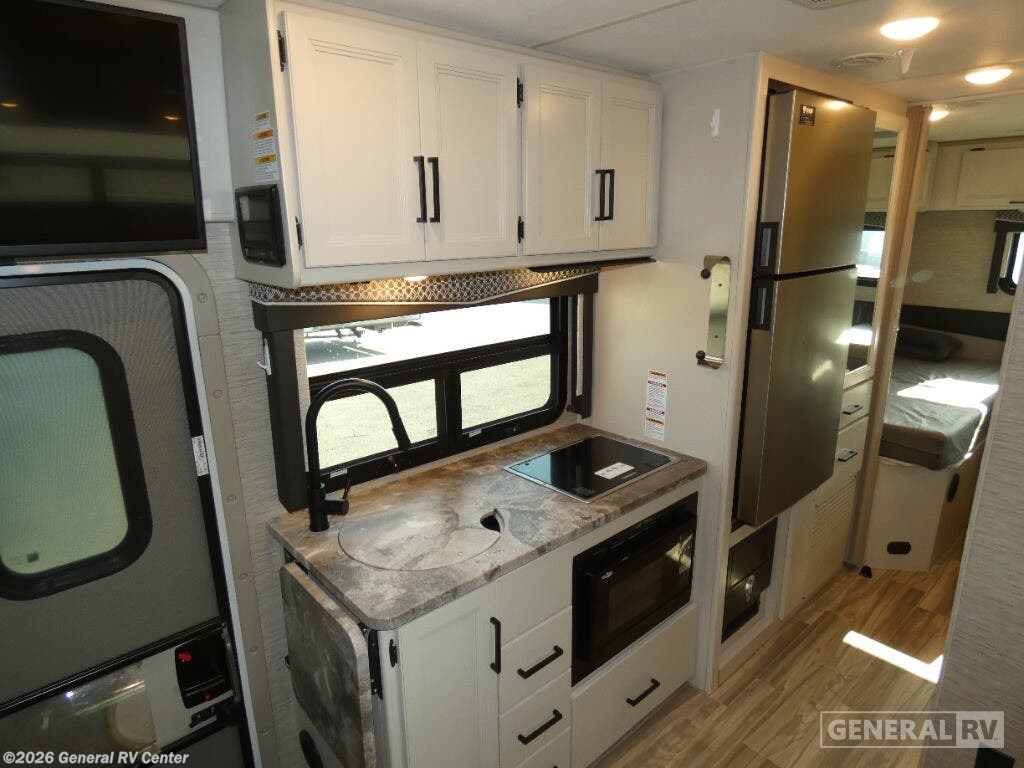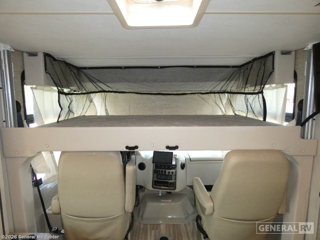 Experience the open road like never before with the 2023 Thor Motor Coach Vegas 24.1. This compact yet spacious RV is designed for those who crave adventure without sacrificing comfort. Measuring just over 25 feet, it offers a cleverly designed layout that maximizes every inch. The center kitchen is equipped with a mid-size refrigerator and a two-burner cooktop, perfect for preparing meals on the go. The front living area is inviting and versatile, featuring a 68" sofa bed and a drop-down overhead bunk, ensuring ample sleeping space for up to five guests. The Vegas 24.1 is built on a robust Ford E350 chassis and powered by a Triton V8 engine, delivering 325 horsepower and 450 lb-ft of torque. This ensures a smooth and powerful drive, whether you're cruising down the highway or navigating winding mountain roads. With a 55-gallon fuel tank and a 17-foot powered retractable awning, your journey will be both efficient and enjoyable. The twin beds in the rear can convert into a king, offering flexibility and comfort for restful nights. Plus, with a shower curtain in the bath area and ample storage throughout, this RV is ready for any adventure. For more details, visit your nearest General RV Dealership.