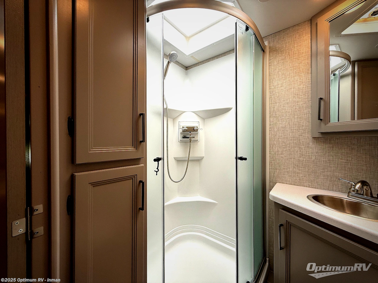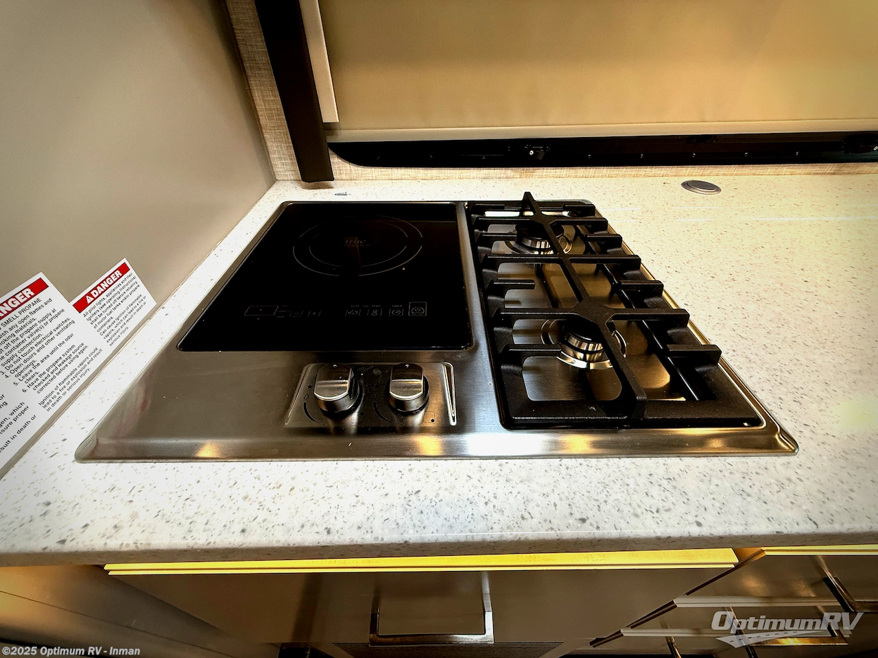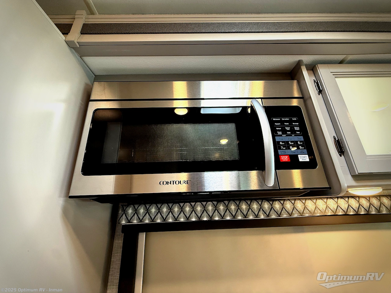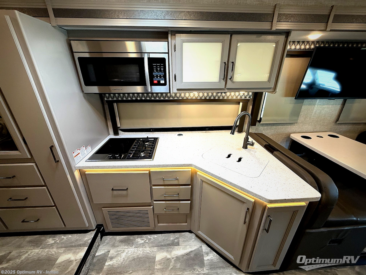 Deciding to go full-time in an RV is made easy with this coach! From the full-wall slide out offering plenty of space in the main living and kitchen area up front all the way back to the rear private bedroom, you will not have to squeeze in to get to any space. The cab overhead bunk offers sleeping accommodations for the kids or grandkids as well as the furniture once prepared for bedtime, and you will sleep like a queen on your own bed. There is a full bathroom with a radius shower, plenty of closets for your clothing, and the kitchen offers a two-burner cooktop and single induction cooktop along with a convection microwave and refrigerator to be able to make any meal. And when you want to watch your favorite television show, there are two TVs inside and an exterior 32" TV to enjoy while relaxing under the power awning.