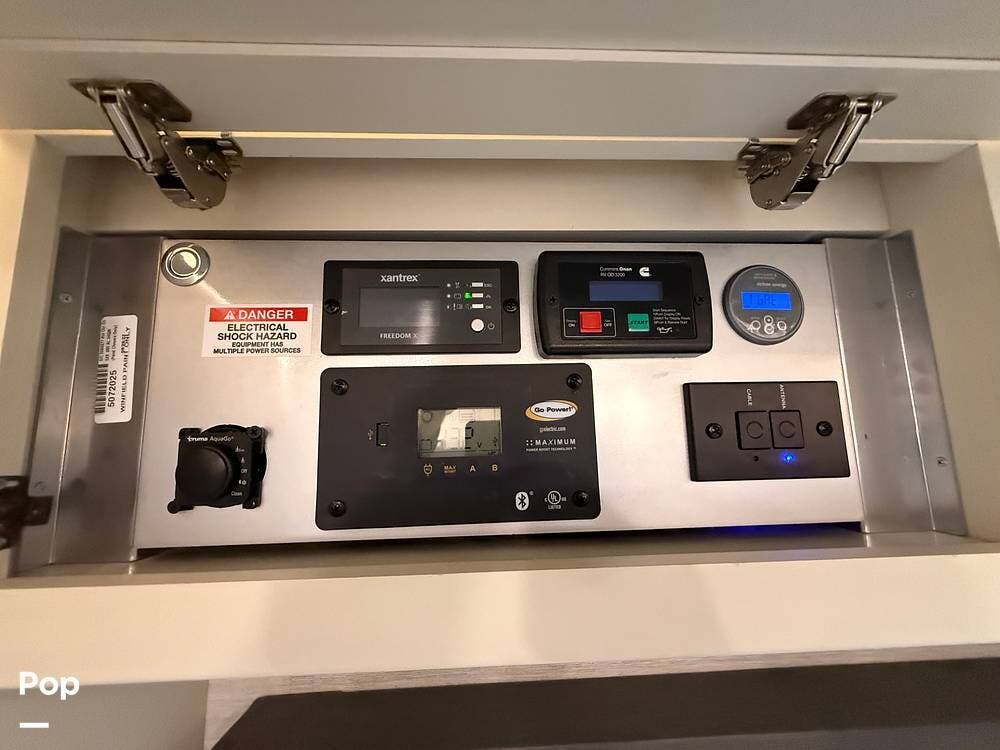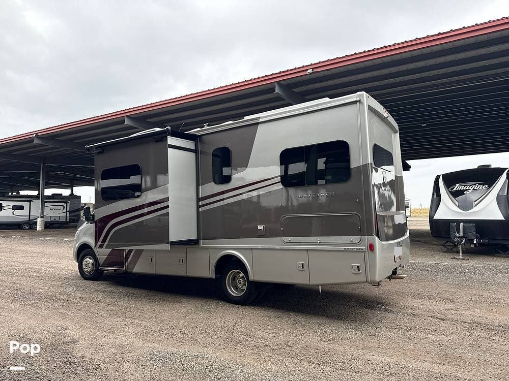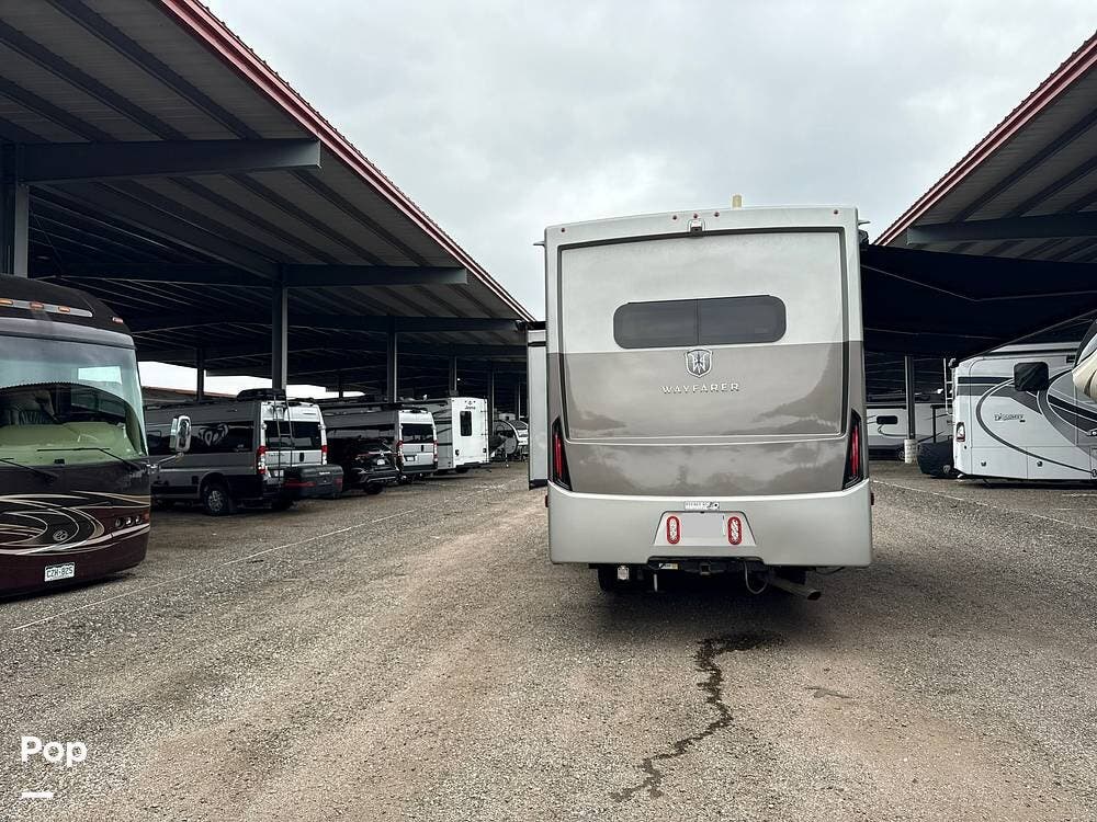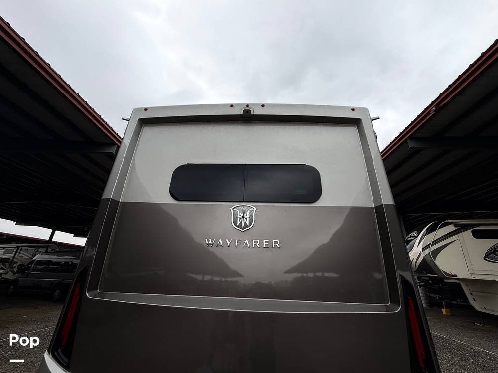 On the exterior, the Wayfarer 25TW boasts full-body paint, a power patio awning with LED lighting, ample storage compartments, and an onboard generator for extended stays.