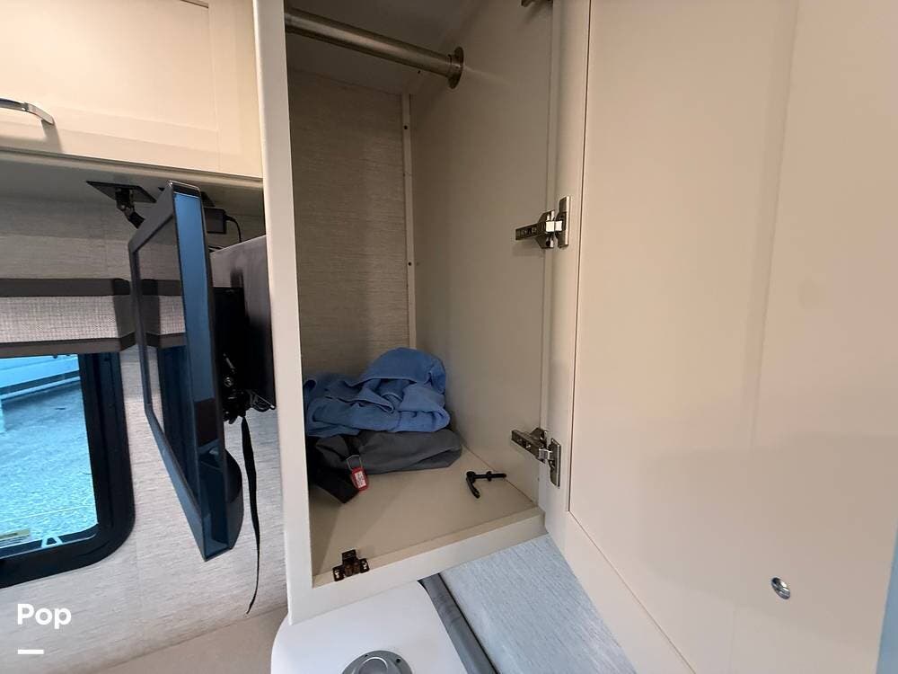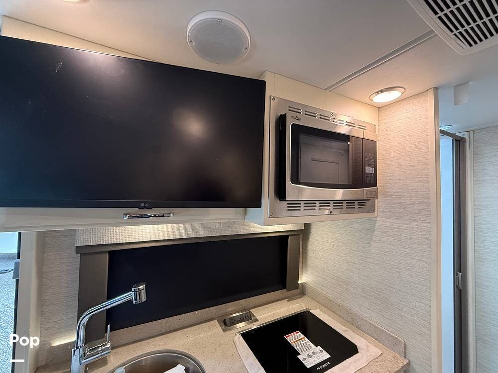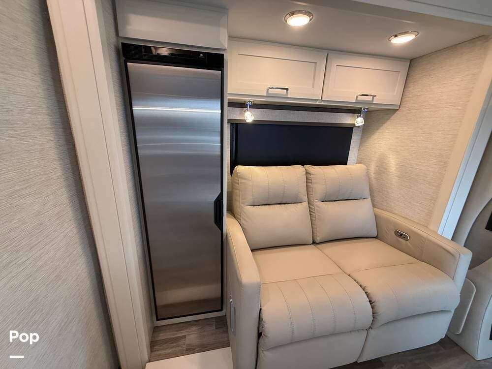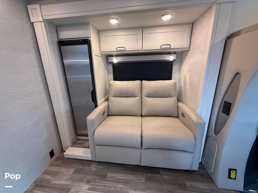 The 25TW floorplan offers a versatile twin-bed layout in the rear that easily converts into a spacious king bed, giving you multiple sleeping options. The living area offers additional accommodations, including a cab-over bunk and convertible seating, making this coach ideal for couples or small families.