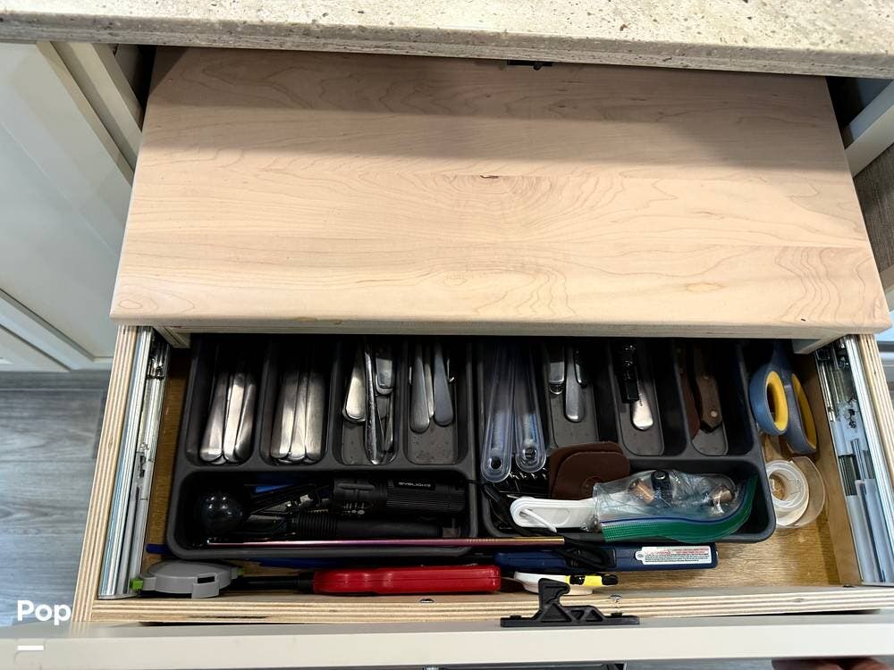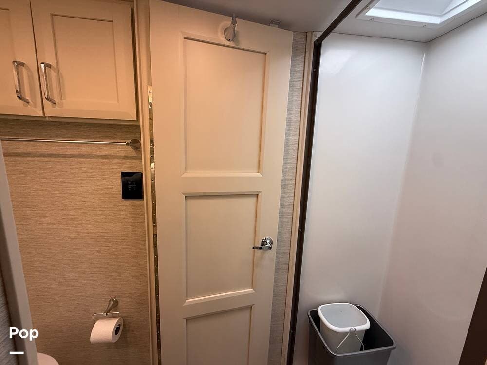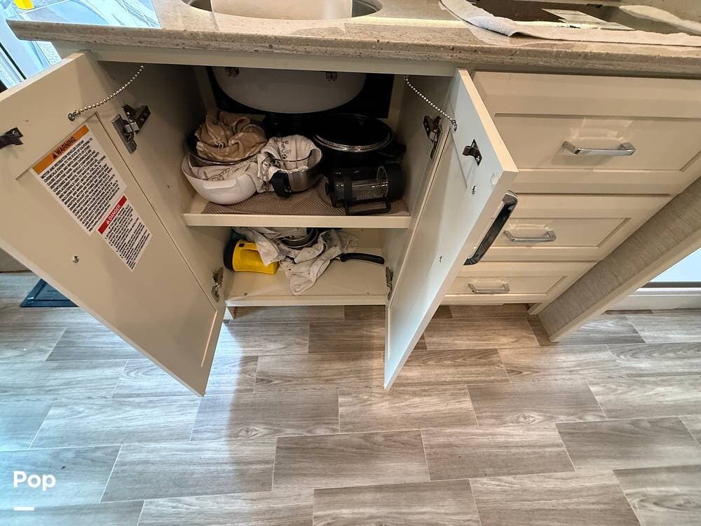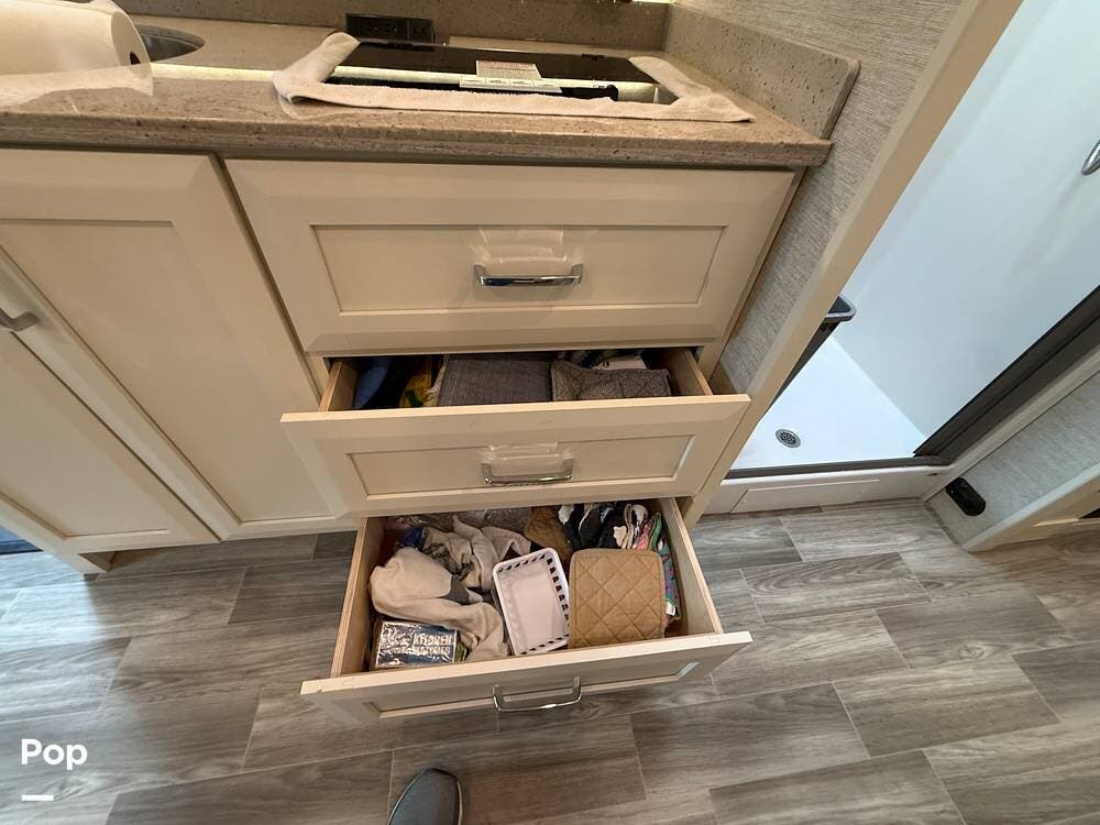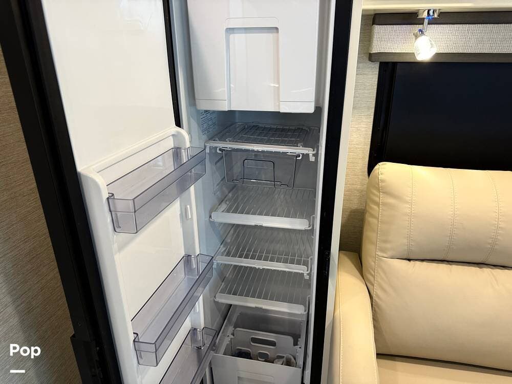 The 25TW floorplan offers a versatile twin-bed layout in the rear that easily converts into a spacious king bed, giving you multiple sleeping options. The living area offers additional accommodations, including a cab-over bunk and convertible seating, making this coach ideal for couples or small families.