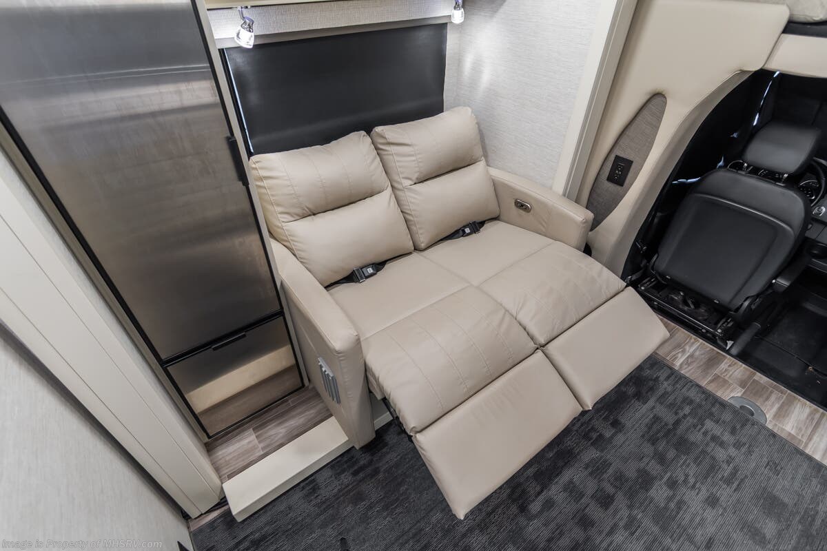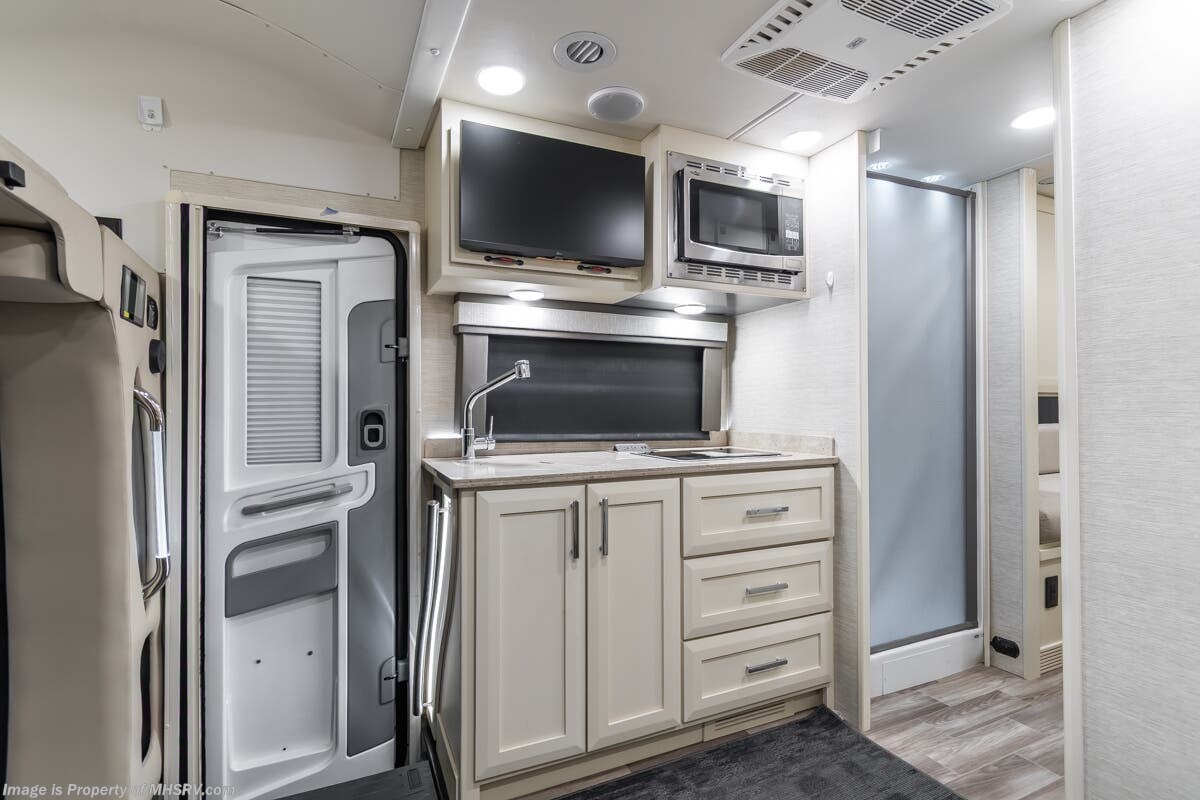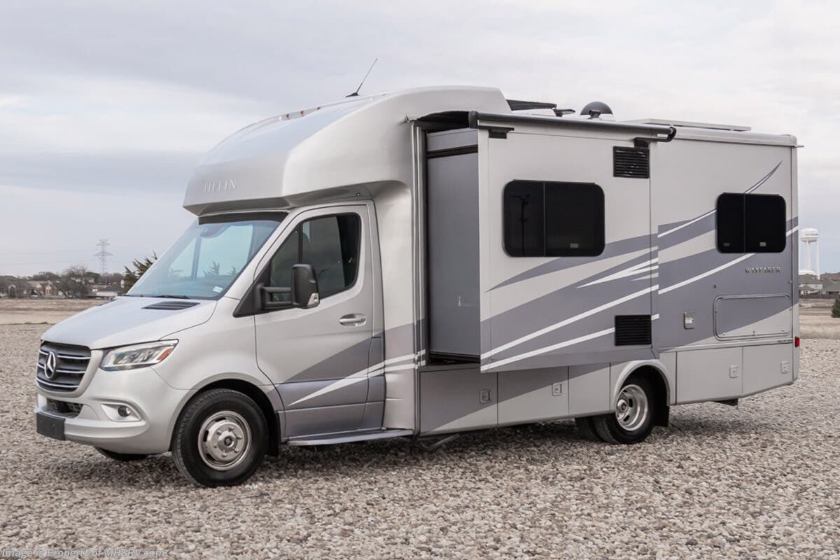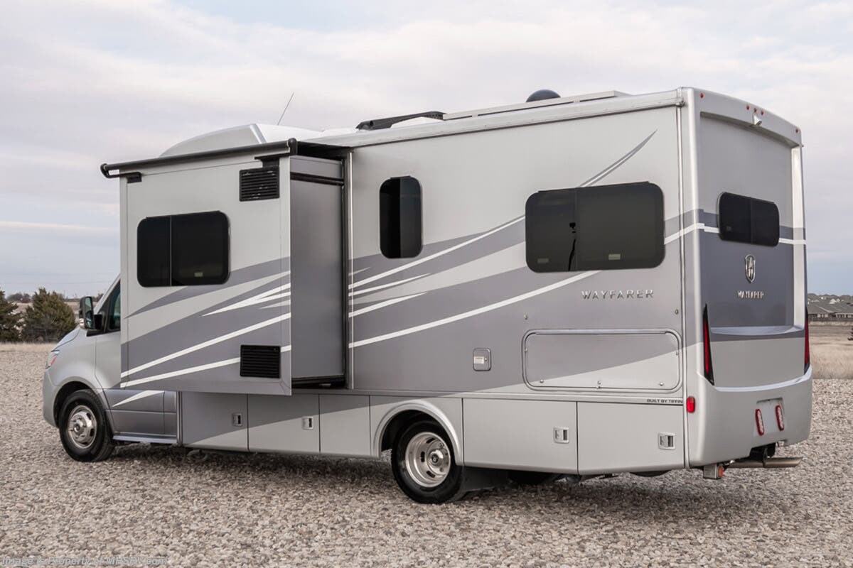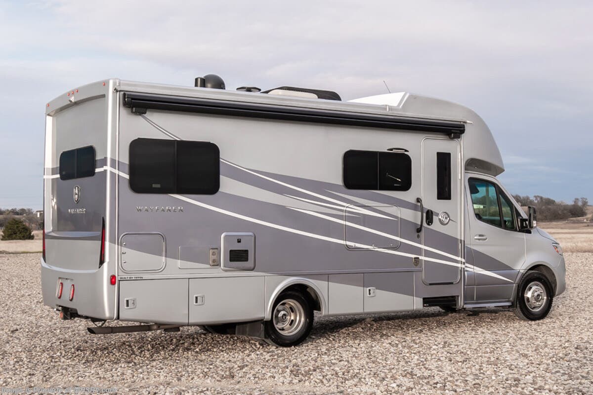 Used Tiffin RV for sale – 2023 Tiffin Wayfarer 25TW is approximately 26’ 0” in length with 23,352 Miles, 1 slide and features bigfoot hydraulic leveling, full body paint, 3 camera system, diesel generator, Mercedes-Benz diesel engine, Mercedes-Benz chassis, tilt/telescoping steering wheel, smart wheel, secondary engine brake, patio awning, pass through storage, LED running lights, black tank flush, water filtration system, exterior shower, clear paint mask, inverter, lithium batteries, leather seating, 7 foot ceiling, multi-plex control panel, hardwood cabinets, convection microwaves, overhead loft, theater seats and much more. For additional details on this unit and our entire inventory including brochures, window sticker, videos, photos, reviews & testimonials as well as additional information about Motor Home Specialist and our manufacturers please visit us at or call 800-335-6054 for our Texas location or 334-288-0331 for our Alabama location. At Motor Home Specialist, we DO NOT charge any prep or orientation fees like you will find at other dealerships. Read Thousands upon Thousands of 5-Star Reviews at and See What They Had to Say About Their Experience at Motor Home Specialist.