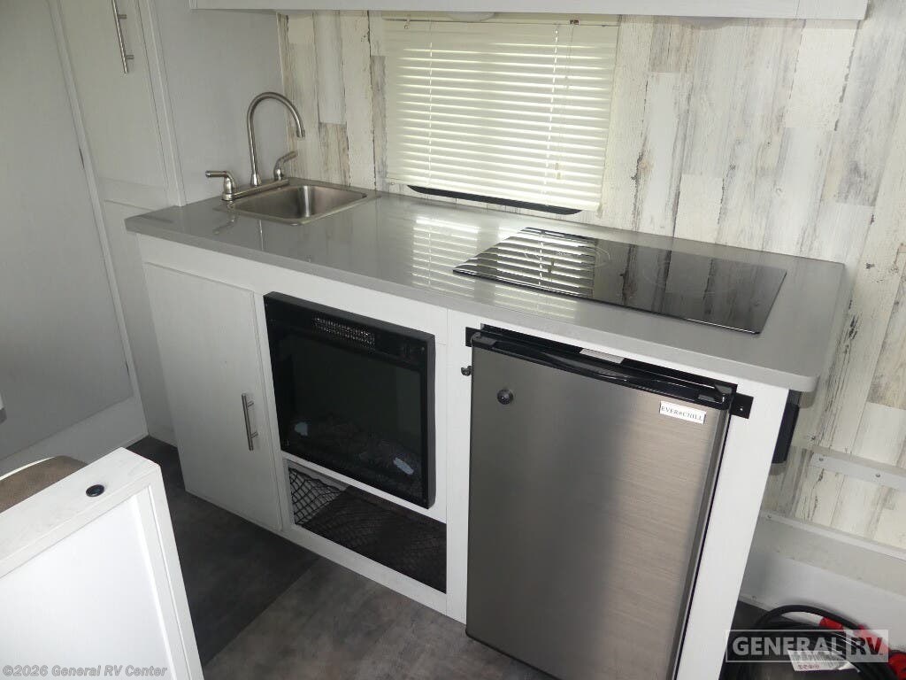## Travel Lite Rove Lite travel trailer 14FLEV highlights - Sofa Bed - Electric Fireplace - Induction Cooktop - Wet Bath - Two Solar Panels This all electric travel trailer is ready to go on your greatest adventures! Relax each evening in true comfort on the front sofa while enjoying a snack that was stored in the kitchen pantry, and the sofa transforms into a full bed for sleeping at night too. The two person dinette offers a comfortable place to play games and enjoy your meals at that were prepared using the induction cooktop, 3 cu. ft. 12V refrigerator, and single bowl stainless steel sink. There are shelves and overhead cabinets throughout to store your items, and a rear corner wet bathroom to freshen up in each morning with a high efficiency vent fan to eliminate any unwanted steam! Each one of these Travel Lite Rove Lite travel trailers are crafted with an aerodynamic teardrop design with revolutionary Hyrdo-Lite material making them easy to tow with nearly every mid-size sedan vehicle! The Hydro-Lite construction makes them impervious to water with the no wood substrate, the moisture blocking gel coat fiberglass, Azdel composite, and honeycomb composite, plus the sidewalls have two-pound fire-retardant block foam insulation that is impervious to heat. The on-demand tankless water heater provides quick hot water so you don't have to wait long for a nice, hot shower. Come find your perfect model today!