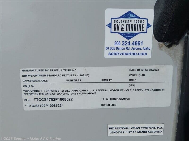 Request More Info on this 2023 Travel Lite SUPERLITE 770R Offered for sale by Southern Idaho RV & Marine