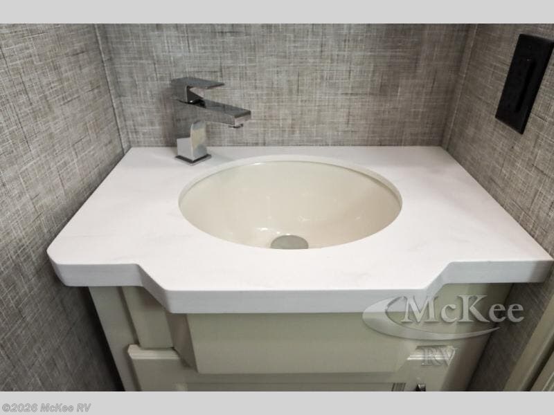 Each Beacon fifth wheel by VanLeigh RV is made with your comfort in mind. From the high-quality Franklin furniture, made in the U.S.A, to the Memory Foam mattress, it's easy to find luxury features at every turn. There are solid surface countertops in each model, along with a stainless steel farm sink, updated cabinetry design, plus new flooring you are sure to love. You will love the sleek look of the full overlay hardwood cabinetry and faceferames, the hand laid vinyl tile flooring, and the updated ceiling treatment. Plan to travel year around with the Whisper Quiet A/C system, the BTU furnace, and the 7,200 BTU electric fireplace, plus each model is constructed with a fully enclosed and heated underbelly with heat return. The outside of the Beacon features two patio awnings, a 2" receiver hitch, new Lippert On-The-Go ladder prep, and the list goes on!