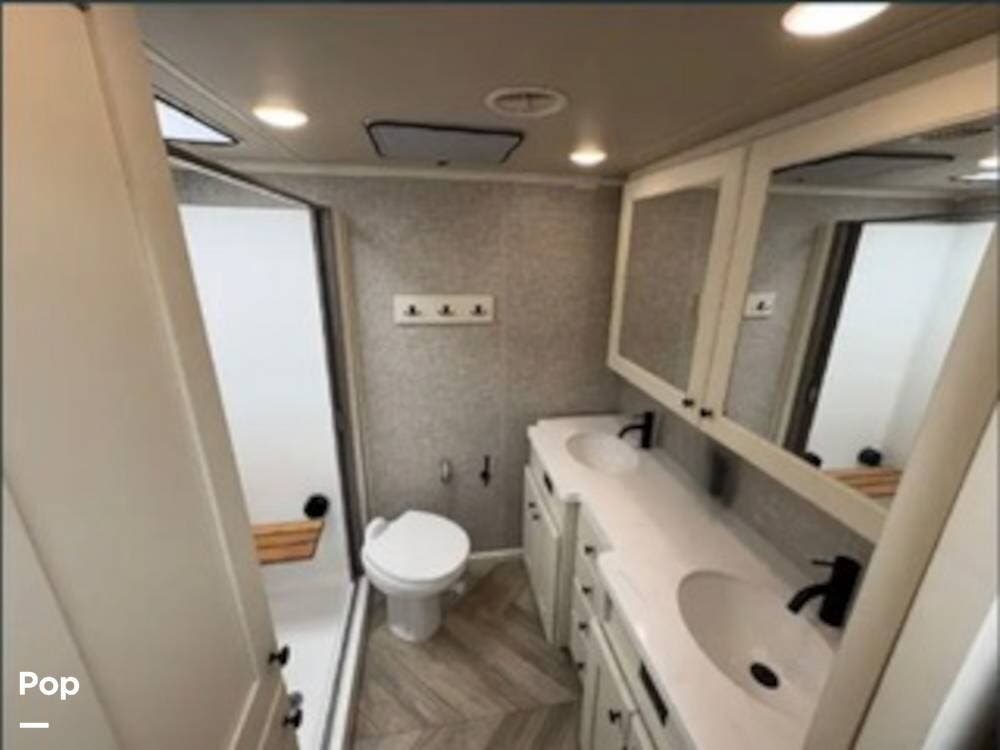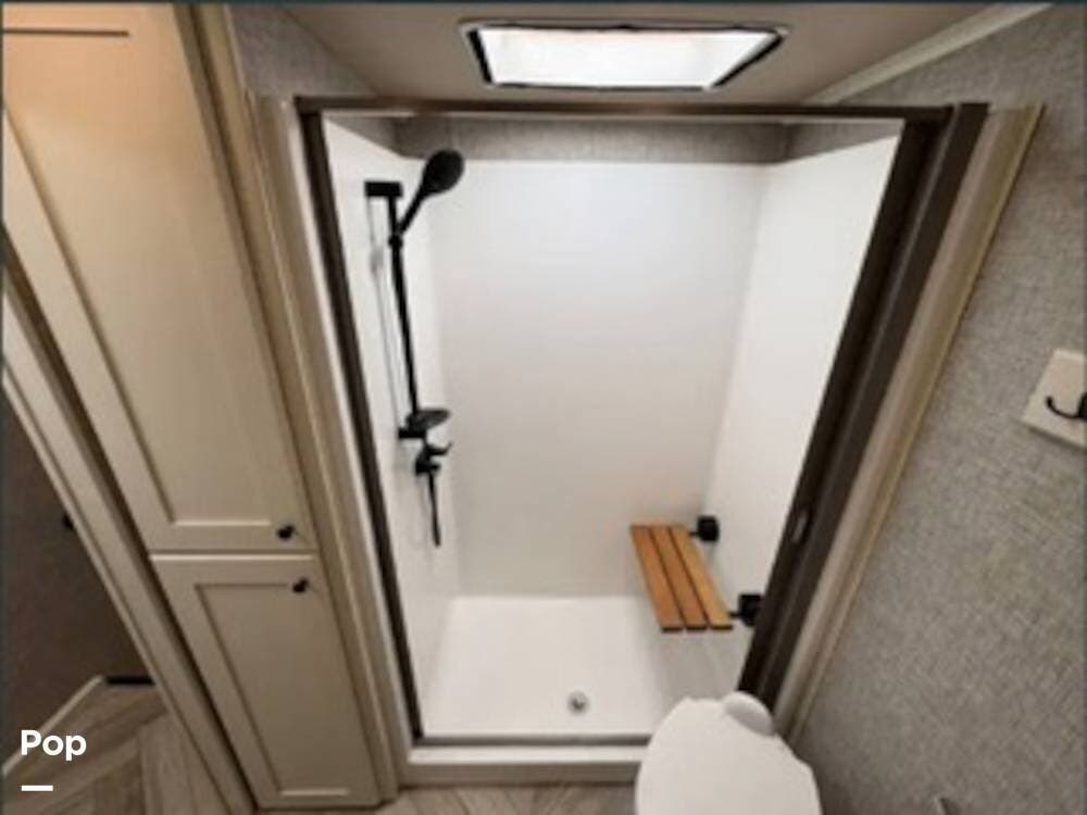 Up front, the private master suite offers a true retreat, featuring a spacious bedroom, ample wardrobe storage, and a beautifully appointed bathroom with residential touches. From the roomy shower to the solid cabinetry and well-thought-out layout, everything is designed to make daily living easy and enjoyable. The attention to detail throughout the Vilano is evident in every room, from the flooring to the trim work.