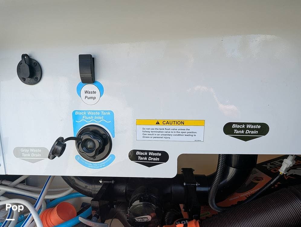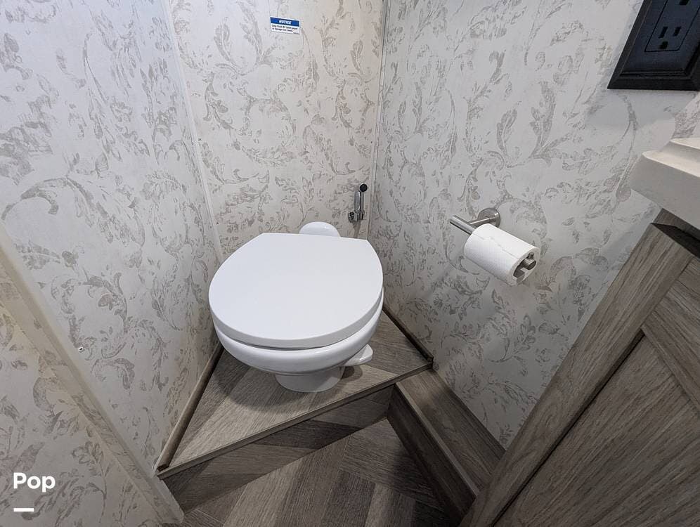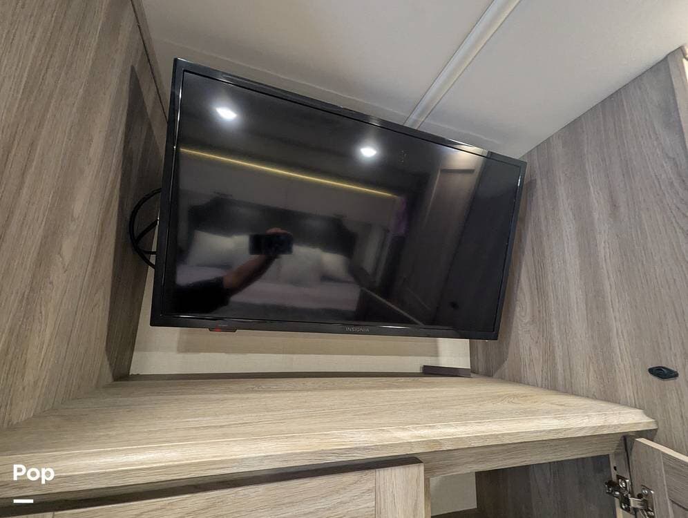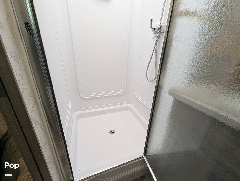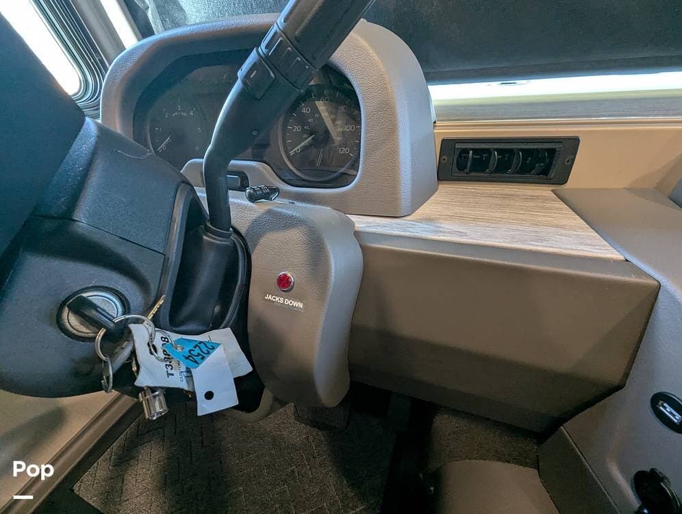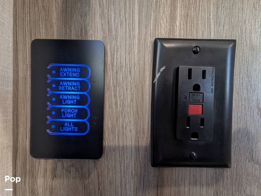 The living room has a convertible chaise lounge couch in front of the flatscreen TV and fireplace! The driver and passenger seats swivel to the rear for extra seating. There is a bath and a half for convenience.
