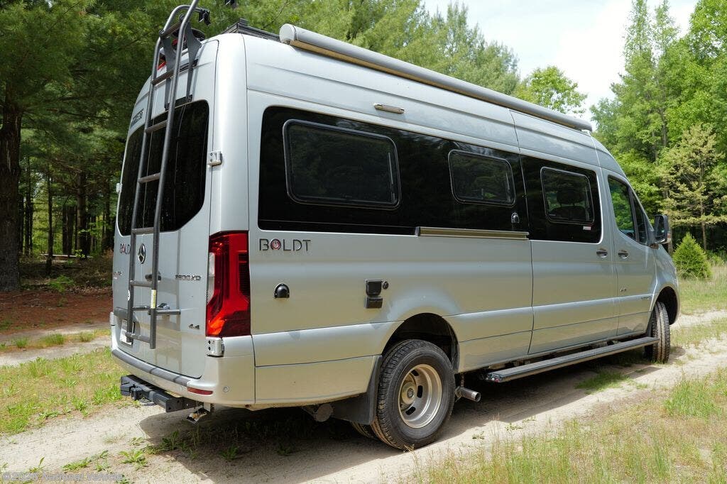 This luxury Class B motorhome combines rugged off-road capability with high-end comfort and style. Featuring a thoughtfully designed interior with premium finishes, a fully equipped galley, spacious sleeping and bathroom areas, and abundant storage. Advanced solar and lithium power systems keep you off-grid longer, while the 4x4 Sprinter chassis ensures confidence on any terrain. With modern amenities, power awning, and all-weather versatility, the Boldt 70BL is perfect for adventure, weekend getaways, or extended travel in total luxury.