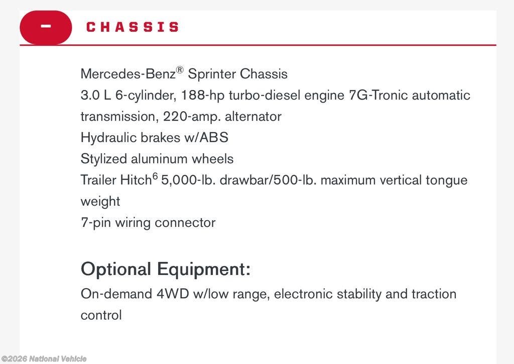 - Engine ManufacturerMercedes Benz 4X4 Sprinter 3.0 Liter