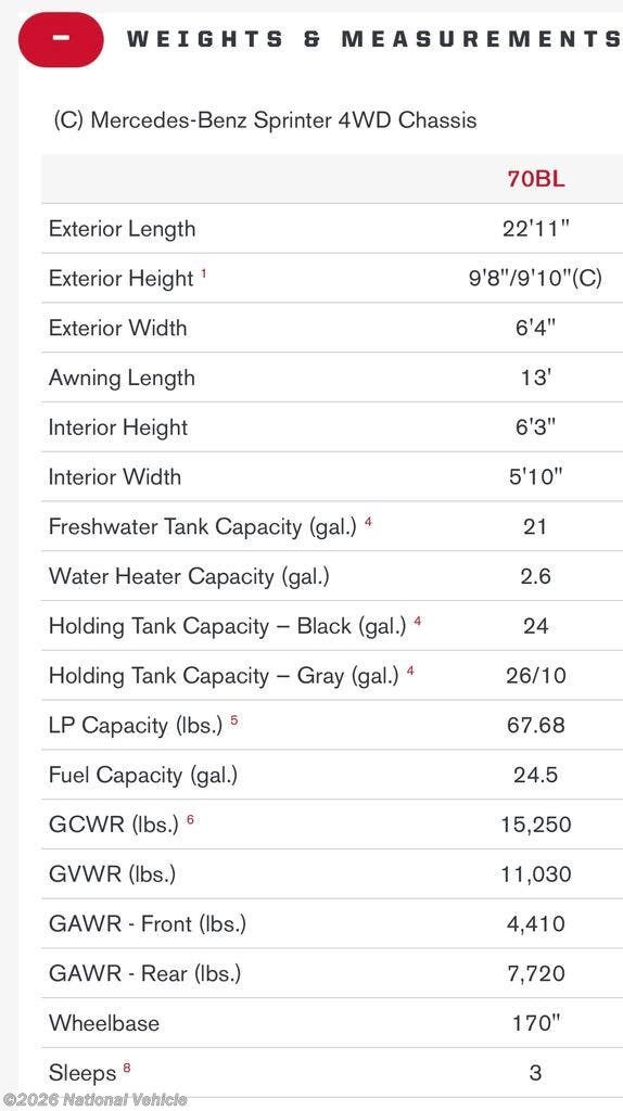 Request More Info on this 2023 Winnebago Boldt 4X4 70BL Offered for sale by National Vehicle