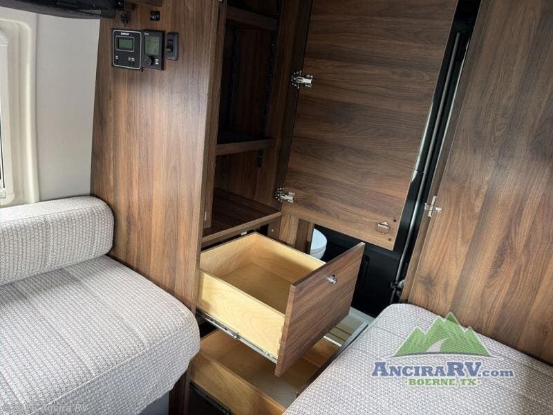 This Boldt motorhome is up for anything, so pack your bags for never-ending adventures! The rear double doors open up to the wet bath so you can quickly use the restroom and get back outside, and there is a bath wardrobe here to store clean towels when it's time to clean up. There are comfortable twin beds with a swivel table in between to enjoy a meal together, and you can easily convert the twin beds to a 41" x 74" Flex bed. Cooking meals will be easy with the single burner induction cooktop, and the pull-up, flip-out table will provide more counter space when cutting fresh veggies. For even more convenience, you will enjoy the power sliding door and rear double doors with a magnetic closure to keep bugs out!