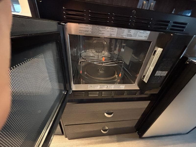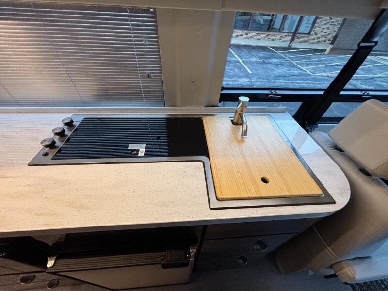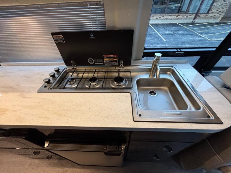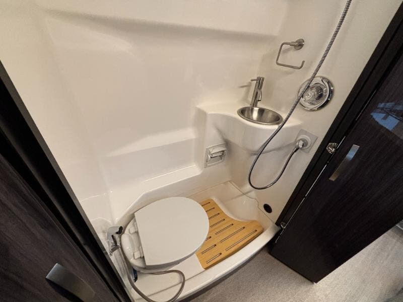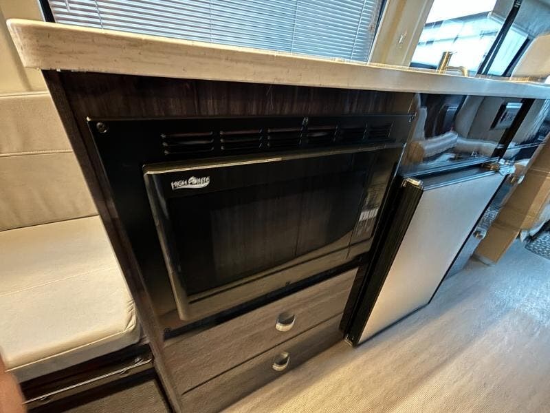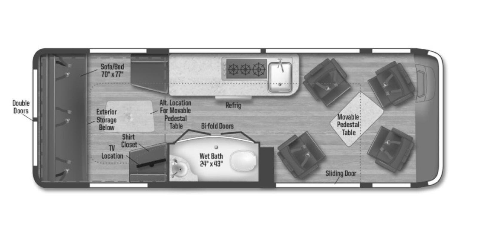 Features Include: 188 HP, 220-Amp Alternator, 4-Wheel ABS Brakes, Spare Tire, Rear Mud Guards, Active Brake Assist, Crosswind Assist, Dual Airbags, Running Boards, Power Door Locks, Power Windows, Sunvisors, 12-volt Powerpoints, NAV, WiFi Hotspot, Rear Camera, Power Steering, Privacy Screens, Side Screen Door, Rear Screen Door, Soft Vinyl Ceiling, Tinted Coach Windows, USB Charging Ports, Outdoor TV Jack, Cooktop Glass Cover, Microwave Oven (70A), Wardrobe (70A), Wet Bath 23x43, Stainless Steel Sink, Shower Mat, Shower Curtain, Flexible Showerhead, LP Tank with Gauge, 200w Solar Panel, 30-Amp Service Cord, On Demand Water Pump, Sewer Hose (70B 70X), Outdoor Wash Station