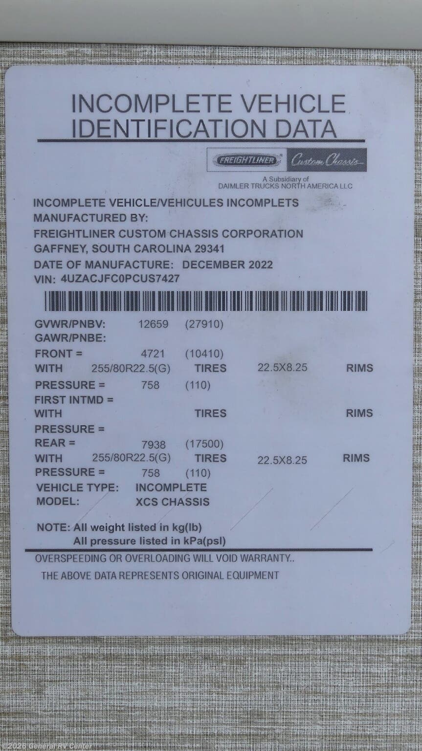 - VIN4UZACJFC0PCUS7427