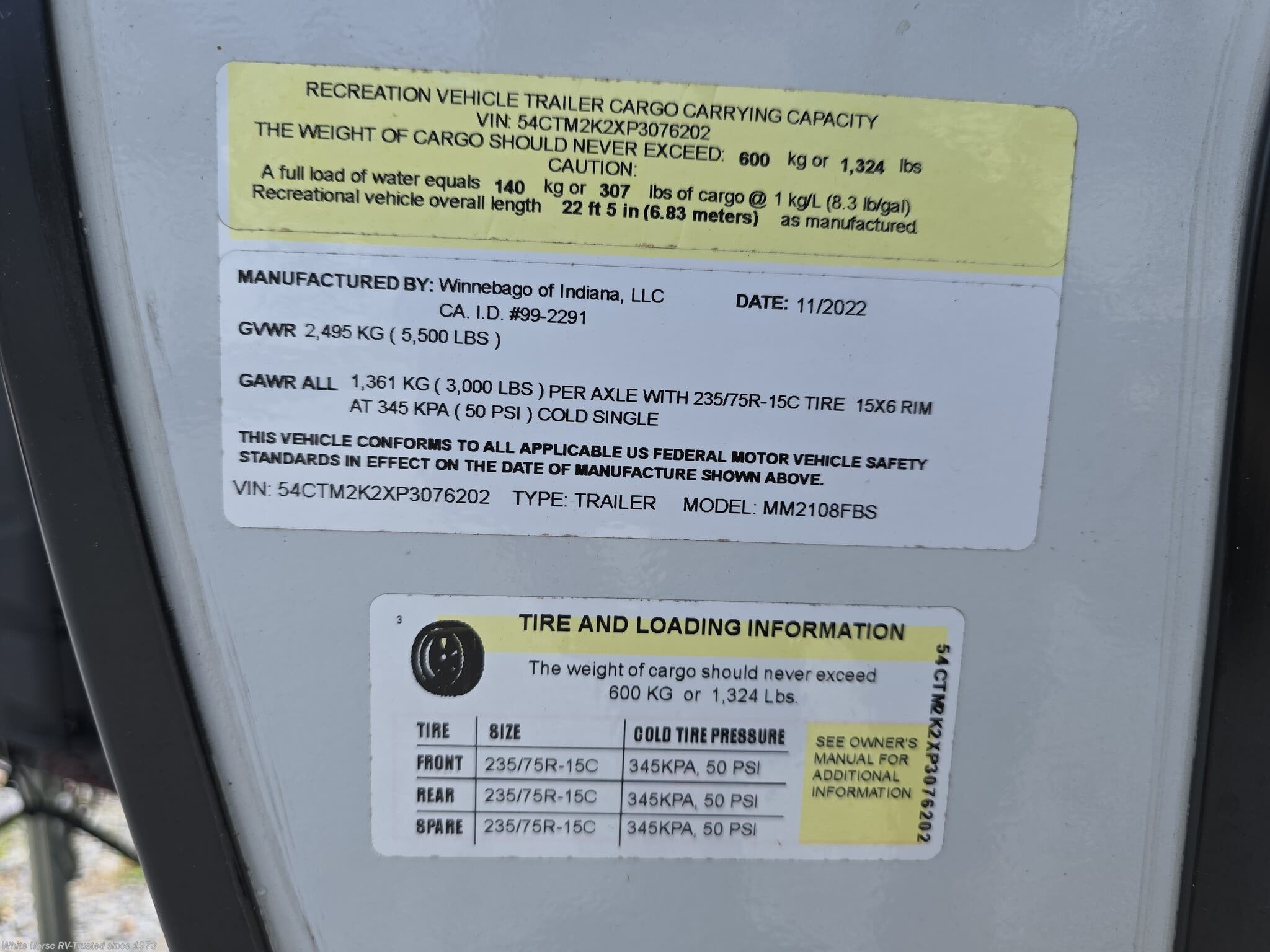 Request More Info on this 2023 Winnebago Micro Minnie 2108FBS Offered for sale by White Horse RV Center