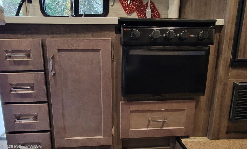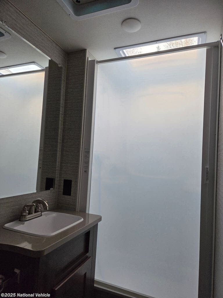 Additional features include a 4.0kW Onan generator, power awning with LED lighting, backup camera, rear and side-view mirrors, roof A/C, and plenty of exterior storage. With modern interior finishes, energy-efficient lighting, and prepped solar capability, this coach is ready for weekend escapes or long-haul journeys.