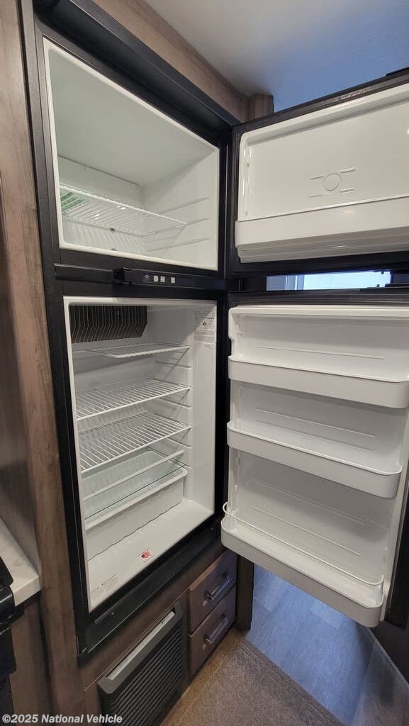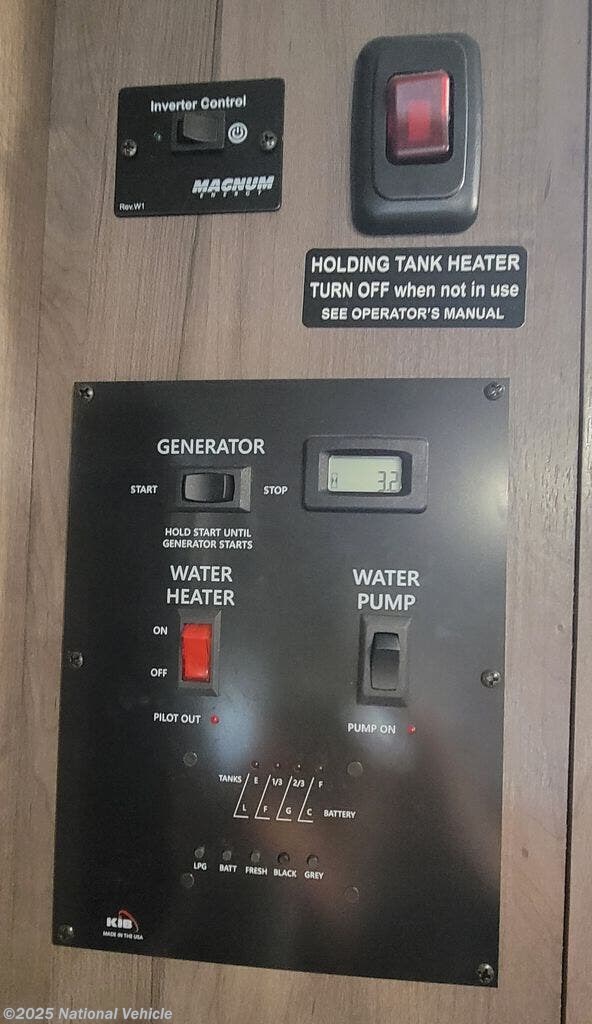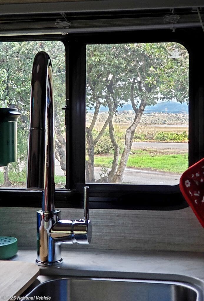 Additional features include a 4.0kW Onan generator, power awning with LED lighting, backup camera, rear and side-view mirrors, roof A/C, and plenty of exterior storage. With modern interior finishes, energy-efficient lighting, and prepped solar capability, this coach is ready for weekend escapes or long-haul journeys.