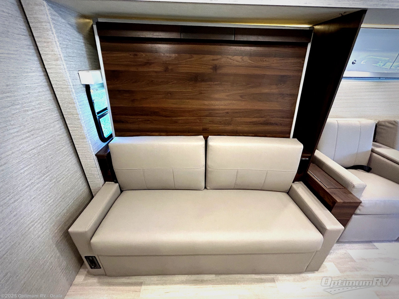 This family-friendly coach offers sleeping space for six when you utilize the Murphy Bed, the cabover bunk and the U-shaped dinette with footrests as sleeping space! Now you might have decided to add the theater seating option, the choice is yours. During the day, the sofa easily replaces the Murphy bed so you can dine at the pedestal table that you grabbed from the front area's location. The heated power control cab seats include armrests, adjustable lumbar support, headrest, recline, slide and manual swivel functions giving you ultimate comfort on the road and while at your RV spot. The cook will love having a galley kitchen with a microwave/convection oven and 12V compressor refrigerator/freezer to keep everyone fed.