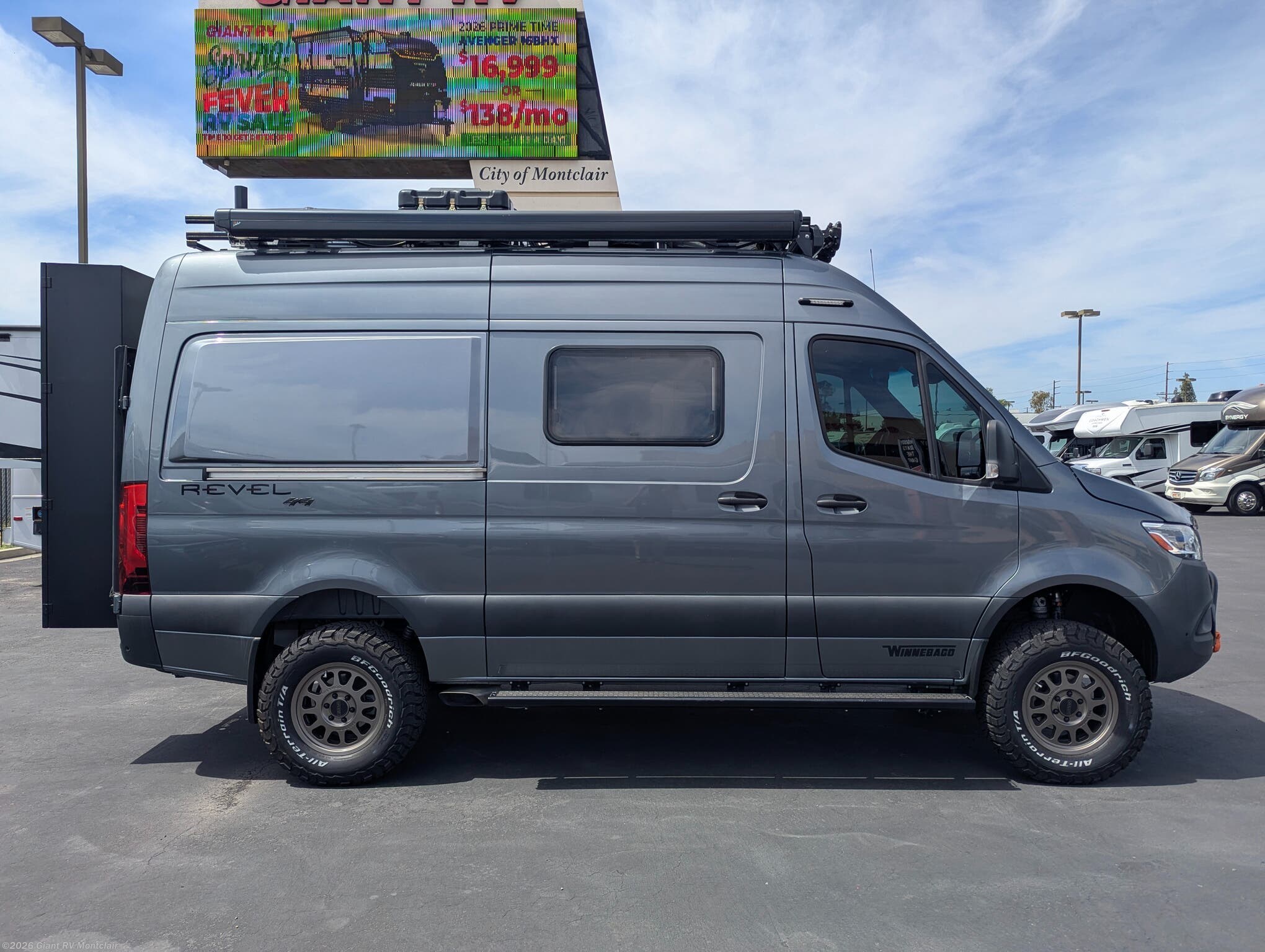 The 2023 Winnebago Revel 44E 4X4 is an adventure-ready Class B camper van designed for off-grid and off-road travel, enhanced with aftermarket upgrades . Built on the Mercedes-Benz® Sprinter 4X4 chassis with a turbo-diesel engine, this van combines rugged capability with smart, space-efficient living — perfect for exploring beyond the pavement.