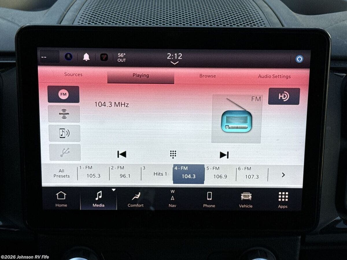 Features Include: 3.6L V6 Gas Engine, 180-Amp Alternator, 4-Wheel ABS Brakes, Fog Lamps, Crosswind Assist, Traffic Sign Assist, Cab Features, Power Door Locks, Power Windows, Apple CarPlay, Android Auto, SiriusXM, Cruise Control, Applique Package, Living Spaces, Porch Light, Pet Loop Attachment, Assist Bar Handle, Gear Space Sofa Bed, Corian Countertop, Countertop Extension, Stainless Steel Sink, 12v 3cf Refrigerator, Technology, 24-inch TV, Sofa Bed, Wet Bath, Assist Transfer Bar, Privacy Curtain, Shower Package, 30-AmpService Cord, 10-Foot Sewer Hose, Outdoor Wash Station