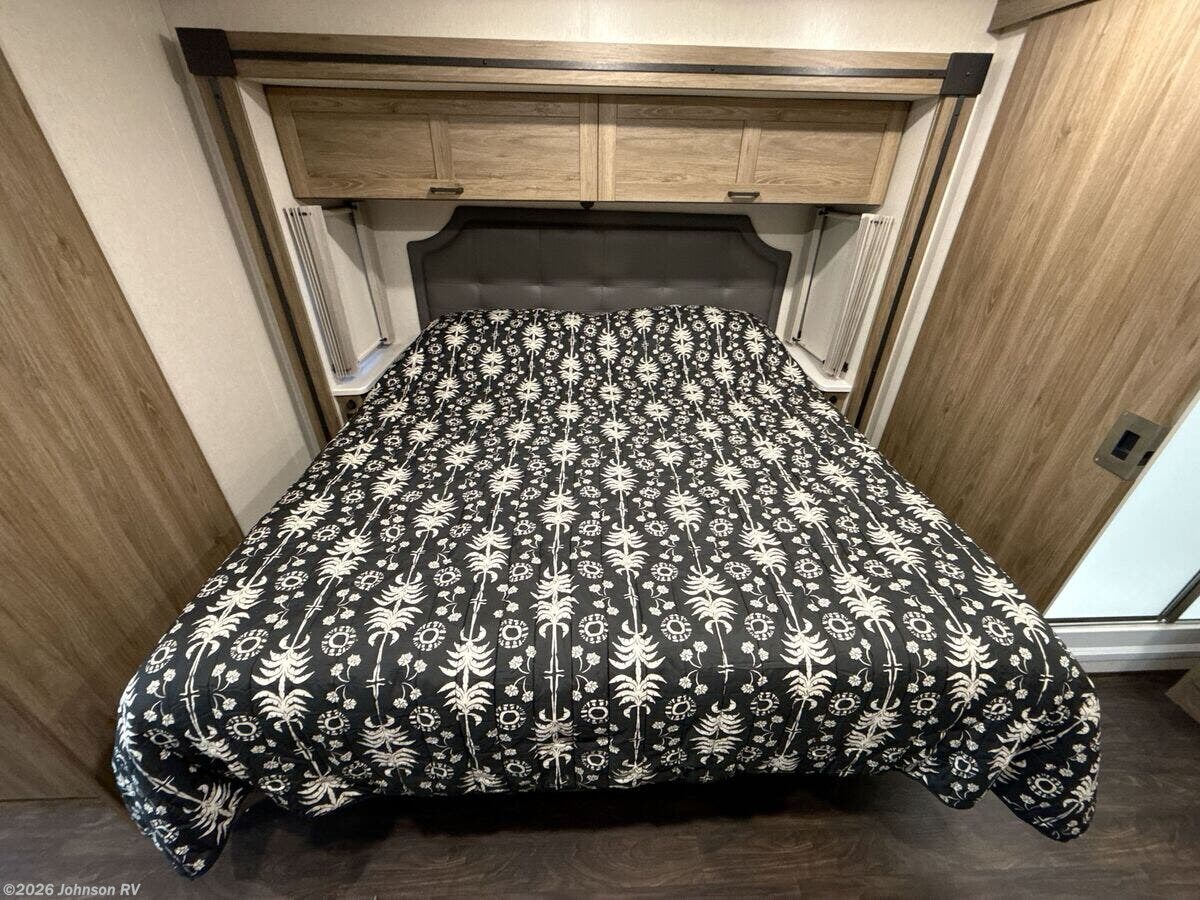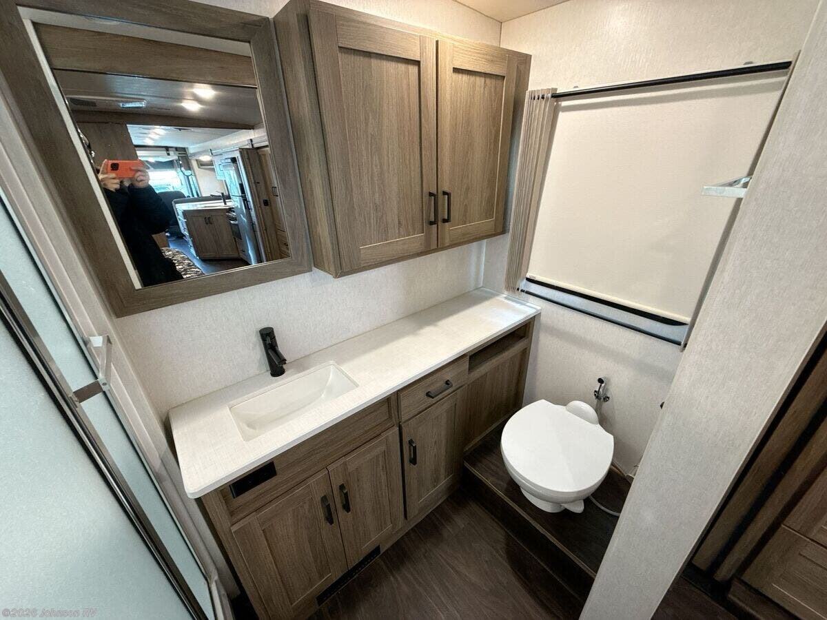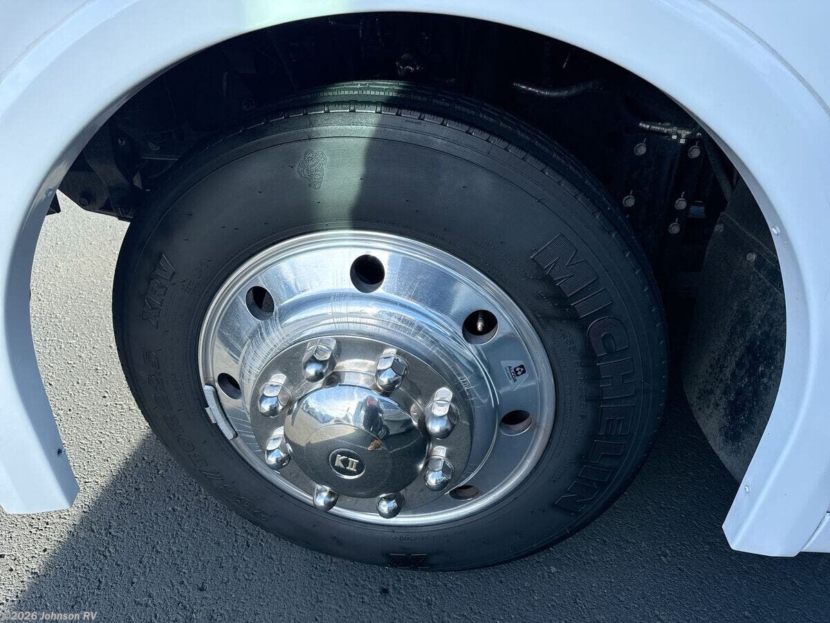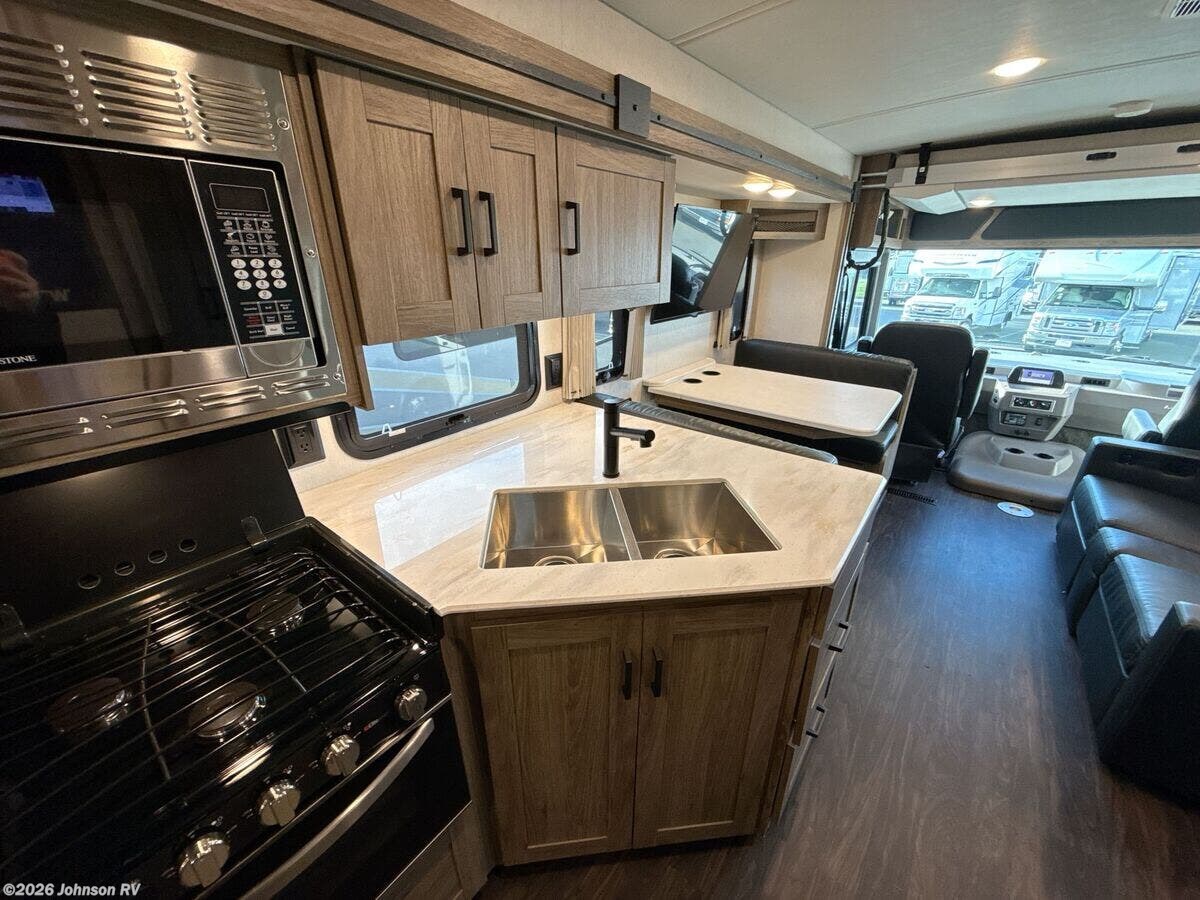 Features Include: 210-Amp Alternator, Hydraulic Brakes ABS, Swivel Cab Seats, Awning LED Lights, Auto Entry Steps, LED Interior Lights, Sofa Bed 40x66 (vbm), Pantry, Stainless Steel Sink, 12v Refrigerator, Auto Leveling System, Entertainment System, Overbed Storage, Reading Lights, King Bed 72x75, Nightstands, Wardrobes, Storage Under Bed, TV Prep Bathroom, Medicine Cabinet, Vanity Sink, Linen Storage, Skylight, Shower, Toilet, Solar Panel Prep, 76# LP Capacity, 30-Amp Service, 1000w Inverter, Low-Profile Furnace, Heated Tanks, Aluminum Framework, Fiberglass Roof, High-Gloss Sidewalls