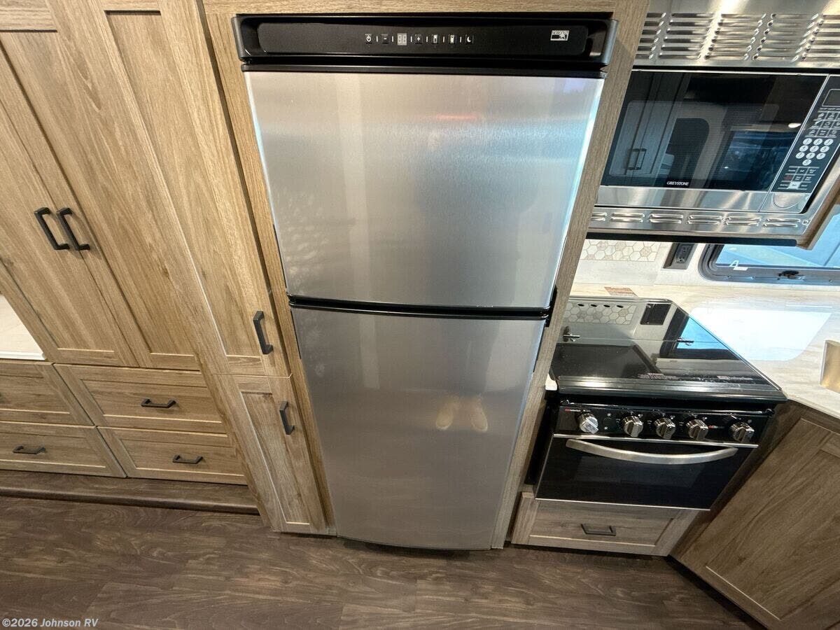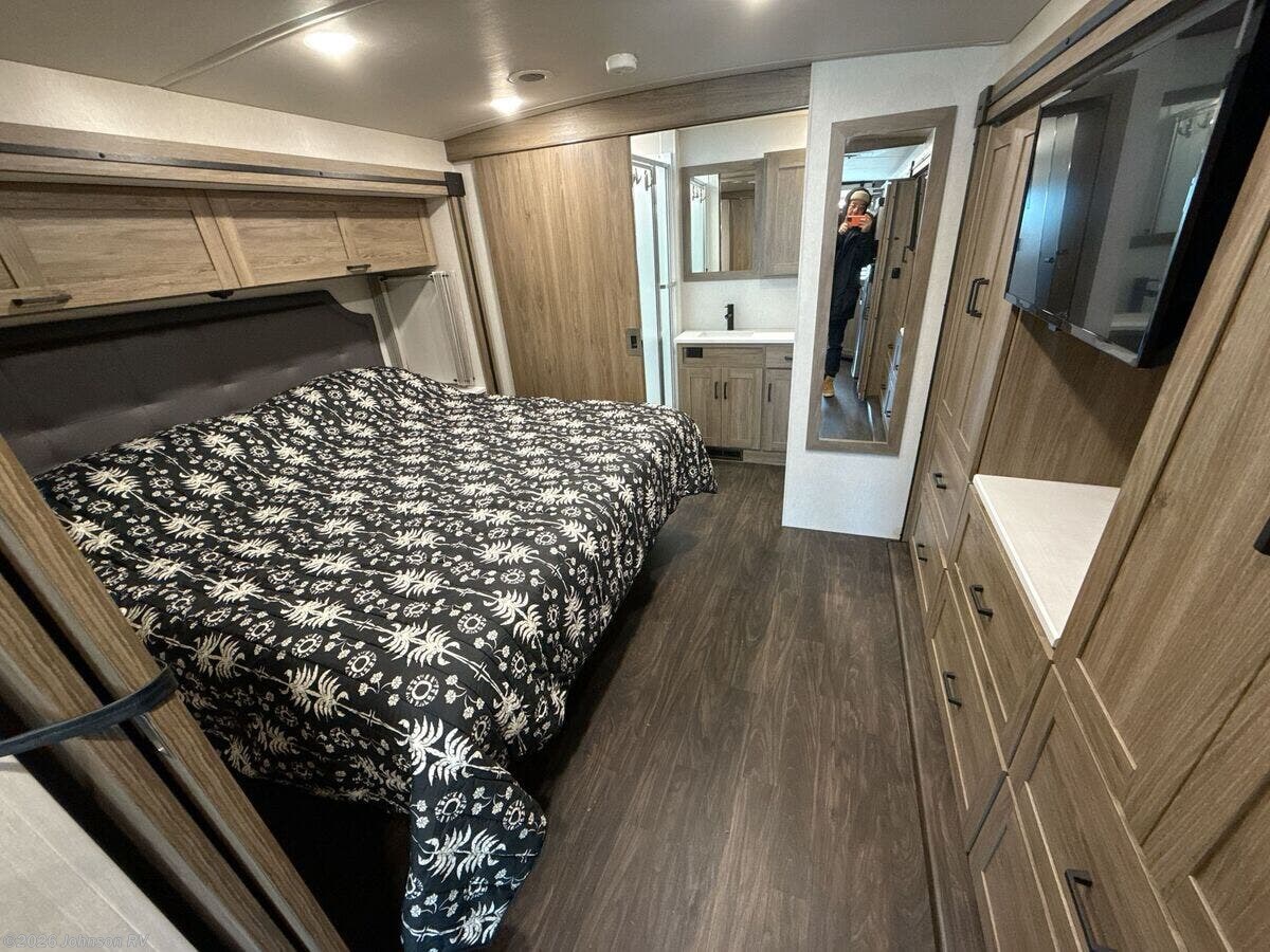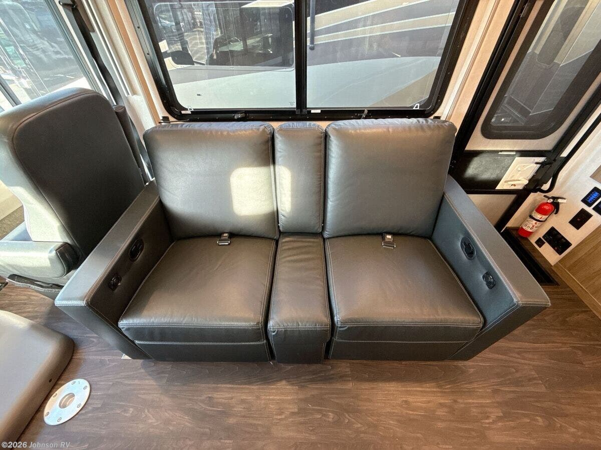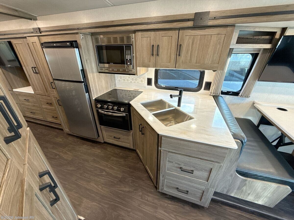 Features Include: 210-Amp Alternator, Hydraulic Brakes ABS, Swivel Cab Seats, Awning LED Lights, Auto Entry Steps, LED Interior Lights, Sofa Bed 40x66 (vbm), Pantry, Stainless Steel Sink, 12v Refrigerator, Auto Leveling System, Entertainment System, Overbed Storage, Reading Lights, King Bed 72x75, Nightstands, Wardrobes, Storage Under Bed, TV Prep Bathroom, Medicine Cabinet, Vanity Sink, Linen Storage, Skylight, Shower, Toilet, Solar Panel Prep, 76# LP Capacity, 30-Amp Service, 1000w Inverter, Low-Profile Furnace, Heated Tanks, Aluminum Framework, Fiberglass Roof, High-Gloss Sidewalls