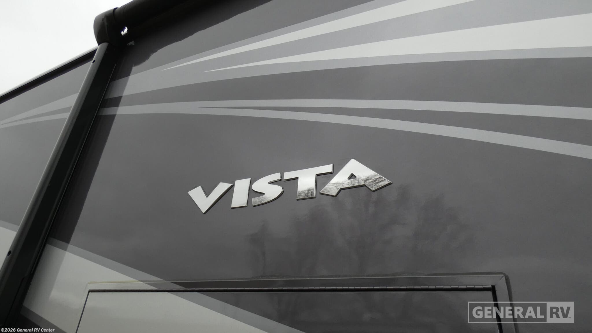 **Winnebago Vista Class A gas motorhome 29V highlights:** - Rear Private Bedroom - Sofa Bed - Tandem Sliding Door to Bedroom - Full Bathroom - Full Wall Slide This motorhome will be your home away from home! It features a rear private bedroom with a 72" x 75" king bed across from one end of the full wall slide that spans the entire length of the unit. In the bedroom portion of the slide you will find two wardrobes with storage between and a space where you can add an optional TV. Start and end your days getting clean in the full bath including a 26" x 38" shower, large vanity with sink, and toilet. Cooking will be easy with the indoor and outdoor spaces. Inside, find a stainless steel 2-door 10 cu. ft. refrigerator for your perishables and a pantry for everyone's favorite snacks. The 42" x 70" dinette with Hi-Lo table comes with storage to keep your games close, and the 40" x 66" sofa bed can be switched out for optional theater seating to relax in true comfort while you watch your favorite movies if you like. You can also add an optional StudioLoft powered 50" x 80" bed above the swivel cab seats for added sleeping space for one or two more guests! The Winnebago Vista Class A gas motorhome will expand your horizons and provide you a great traveling home on wheels! The Vista is powered by a 7.3L PFI V8 engine on a Ford F53 chassis with 5,000 lbs. of towing capacity which allows you to bring along one of your favorite toys. The adjustable swivel cab seats in front can slide and recline so you can be sure to have the perfect level of comfort in addition to entertainment with the 7" LCD color touch screen that is Sirius XM ready and Bluetooth compatible with Android Auto and Apple CarPlay. The powered blackout roller visor/shade on the front windshield provides extra privacy, and the passenger dash workstation with USB and 12-volt power port lets you get some work done while on the road.