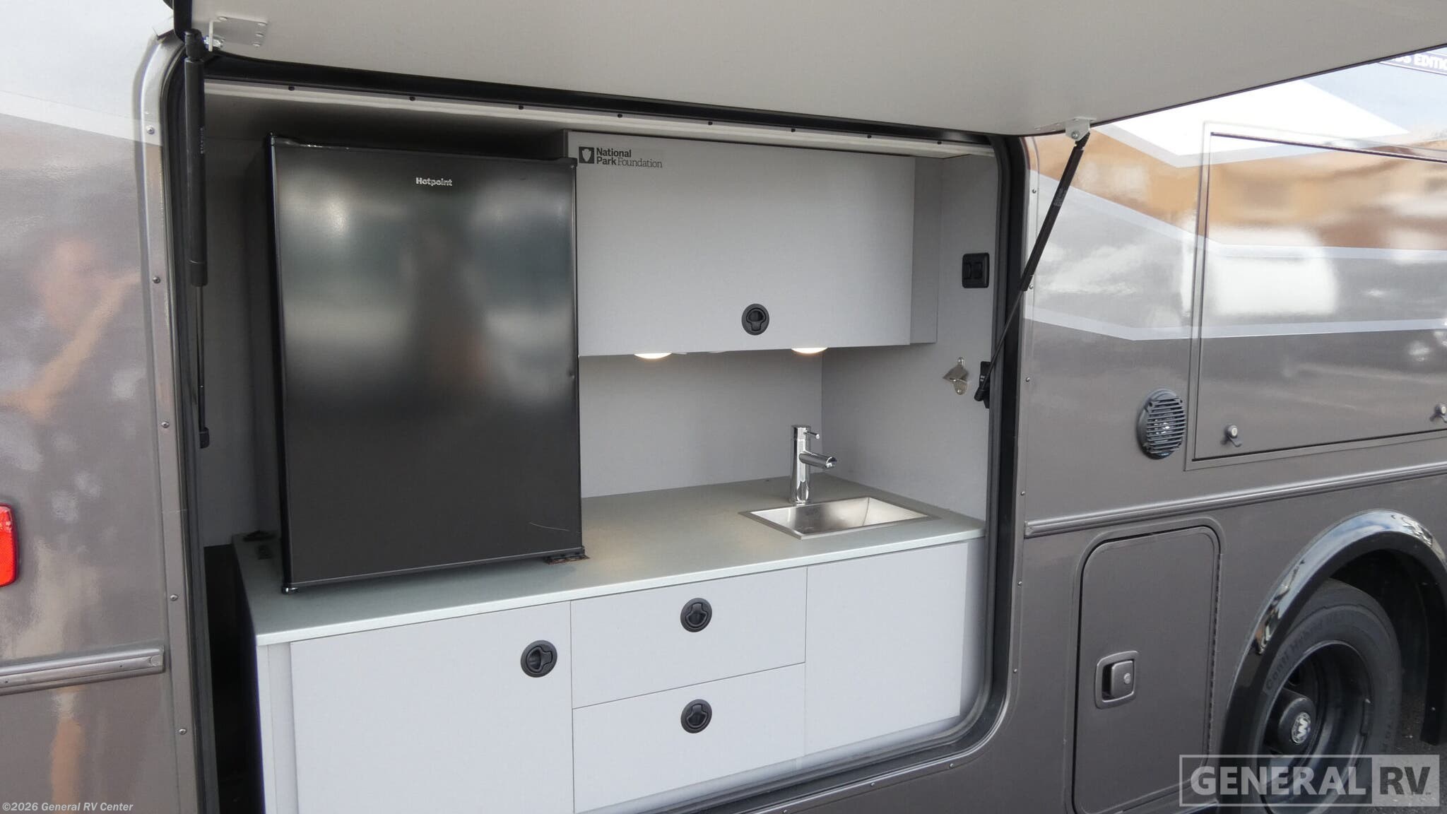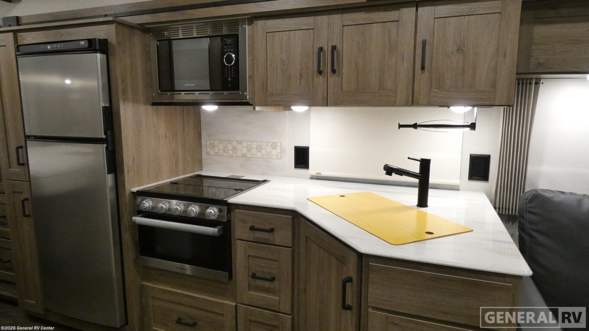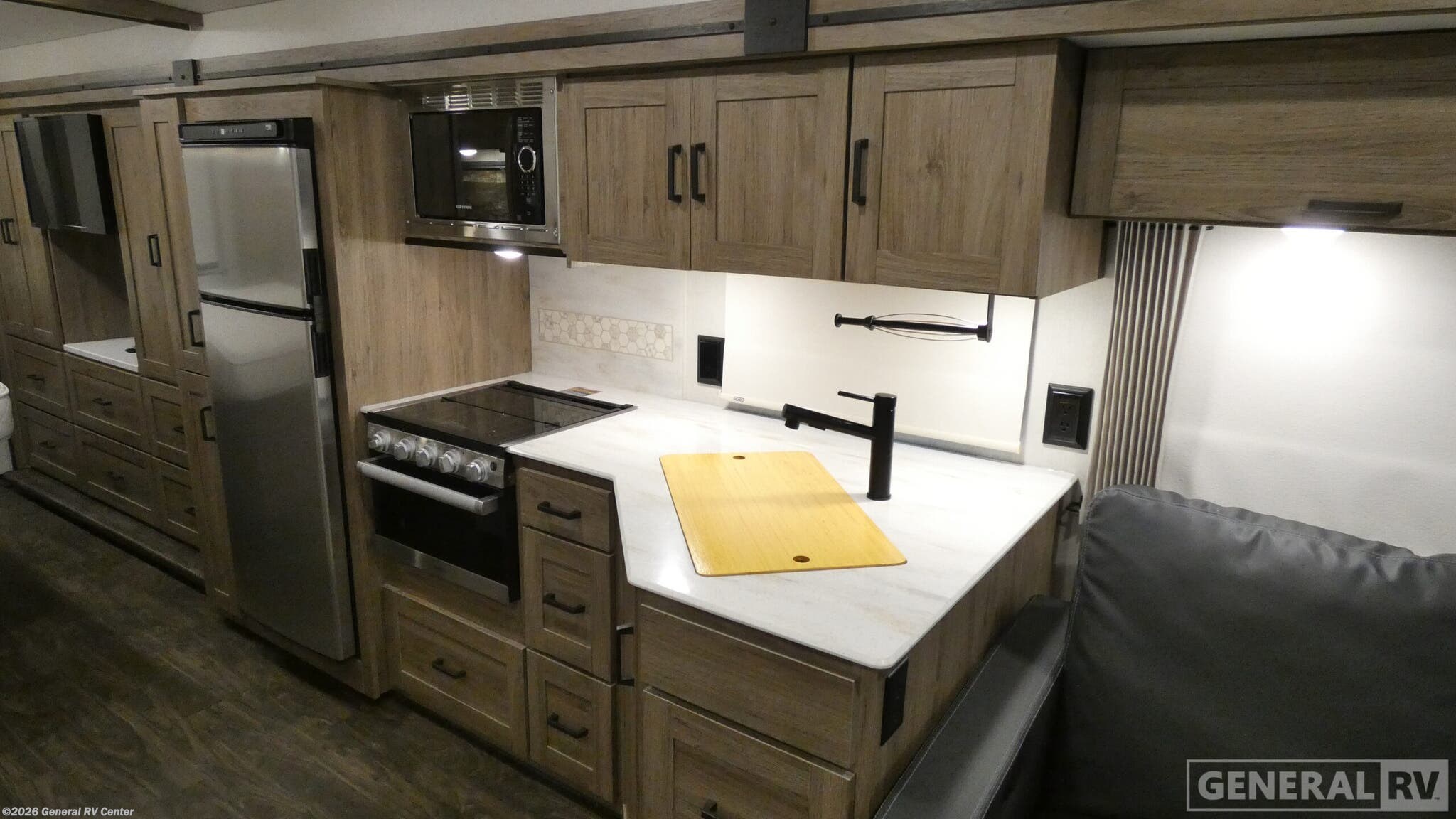 Step into the world of adventure with the 2023 Winnebago Vista NPF 29NP, a motorhome designed to elevate your travel experiences. This RV, built on the robust Ford F53 chassis, boasts a powerful 350-horsepower engine, ensuring a smooth ride wherever the road takes you. With a spacious length of 30 feet, this home on wheels offers ample room for up to eight guests, featuring a luxurious king bed, a cozy double bed, and two convertible sleeping areas, making it the perfect retreat for family and friends. Inside, the Vista NPF 29NP is a blend of comfort and functionality. The center kitchen is equipped with a full-size electric refrigerator and a three-burner cooktop, perfect for whipping up meals on the go. The front living area invites relaxation with a plush sofa/bed and an optional StudioLoft bed for added sleeping space. The cleverly designed floorplan includes a center bath with a convenient shower, and the rear bedroom offers privacy and ample storage with multiple wardrobes. The 17 ft. powered retractable awning extends your living space outdoors, ideal for soaking up nature’s beauty. Whether you’re embarking on a weekend getaway or a cross-country journey, the Vista NPF 29NP is your reliable companion. With its generous fresh water capacity, automatic heater, and thoughtful storage solutions, this RV ensures you travel in style and comfort. For more details or to experience this remarkable motorhome in person, visit your nearest General RV dealership.