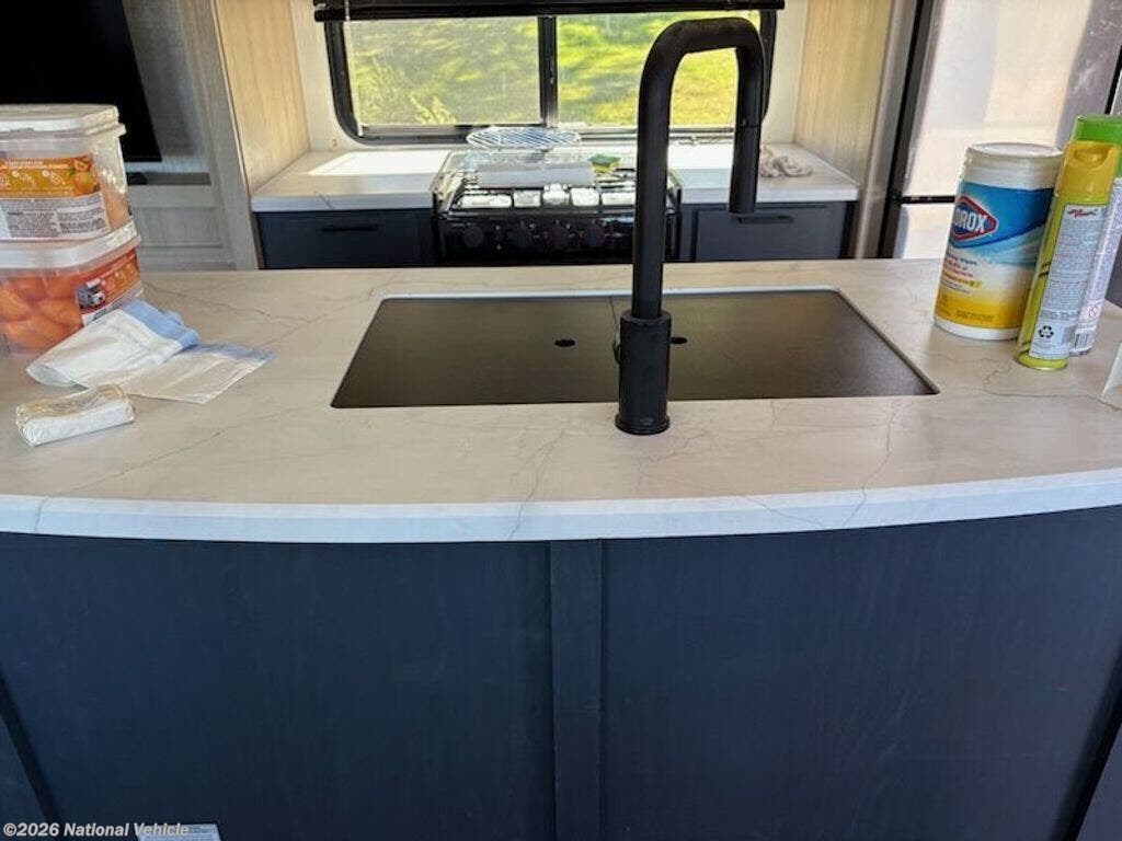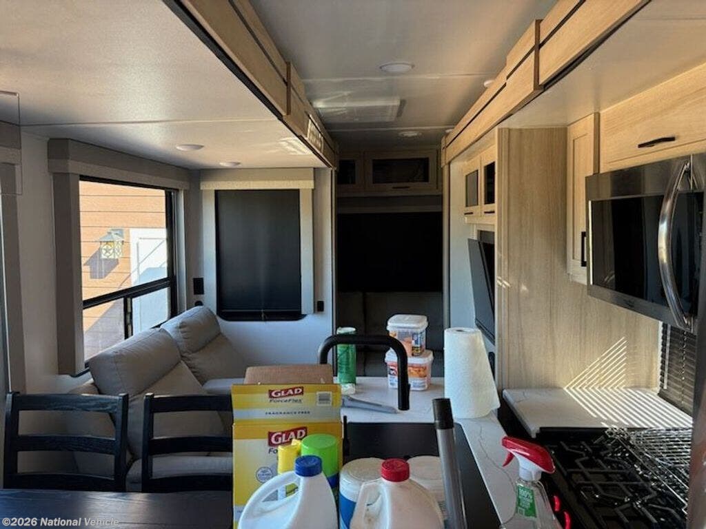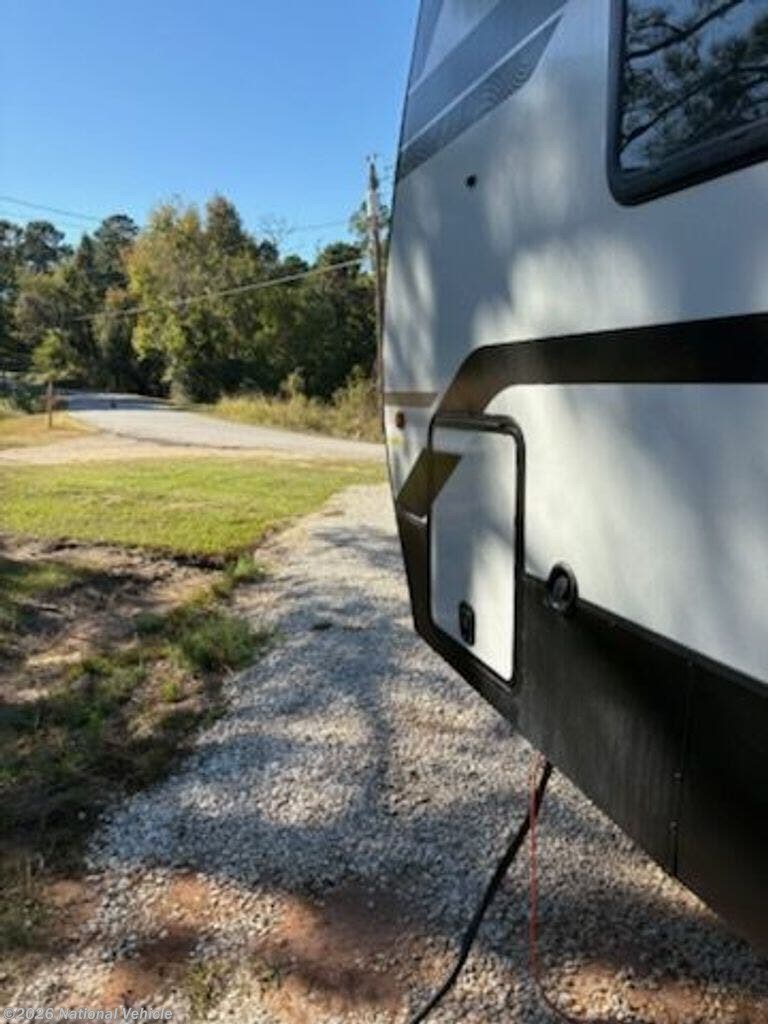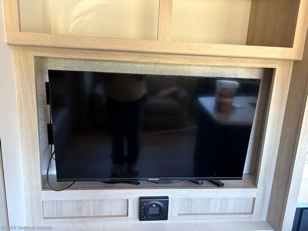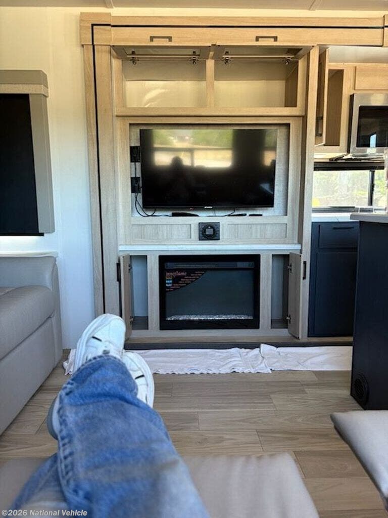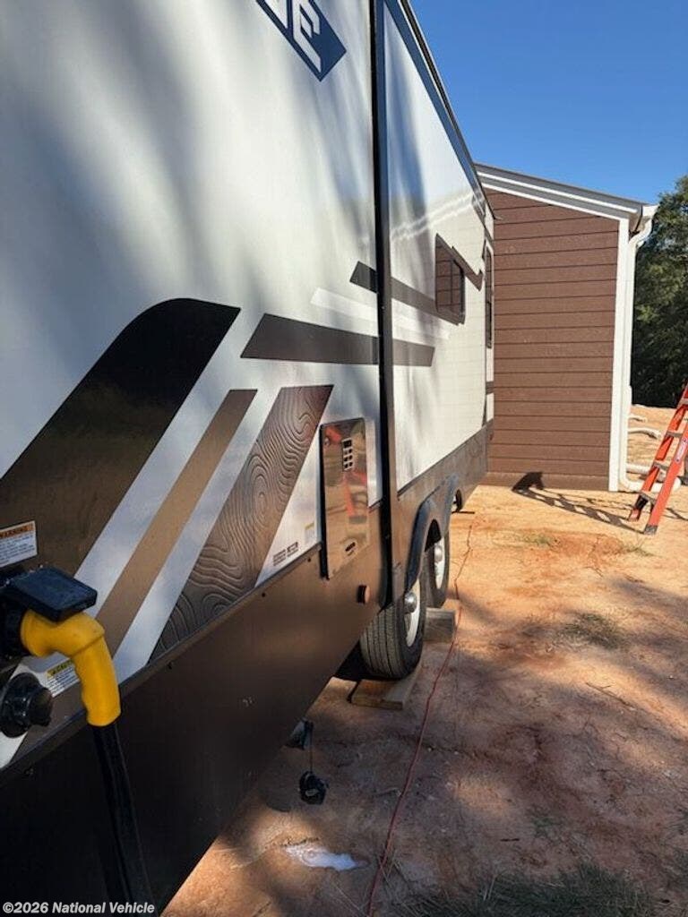 2023 Model was purchased in June 2024 and set up under cover for 15 months. Wired for WiFi, 2 TVs, Ventless clothes washer, sleeps 4, like new, everything works!!!