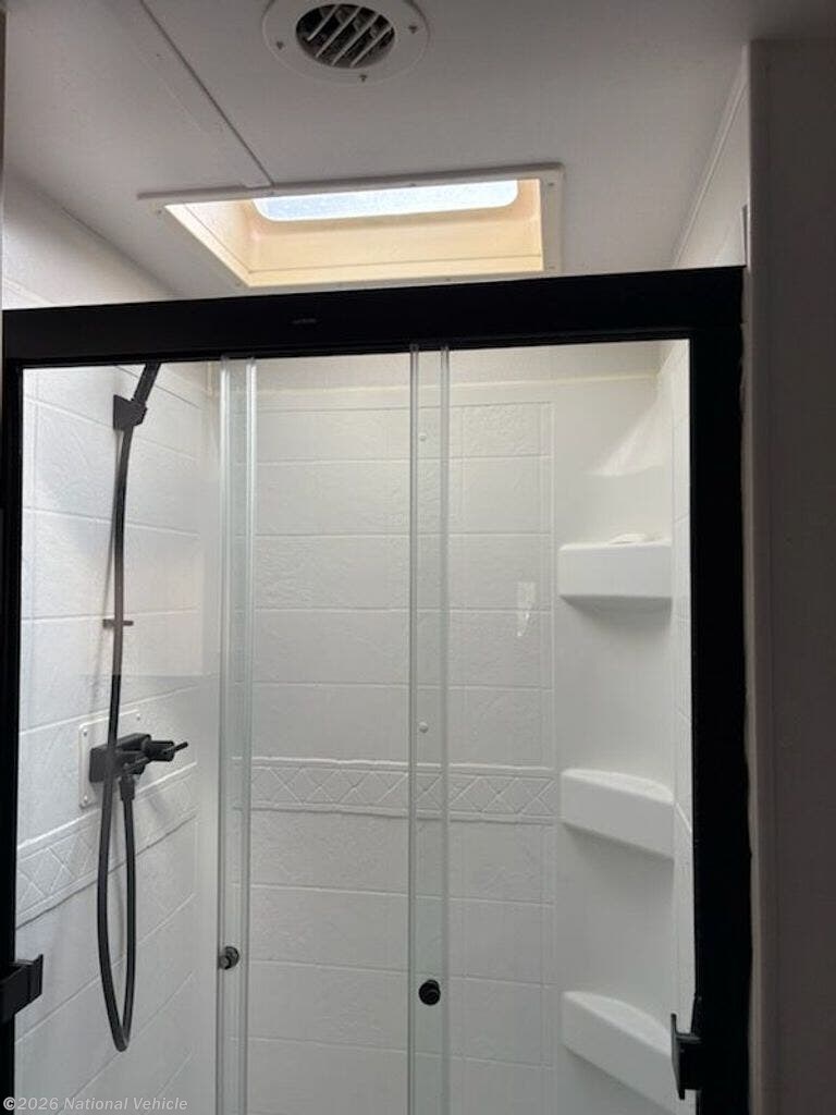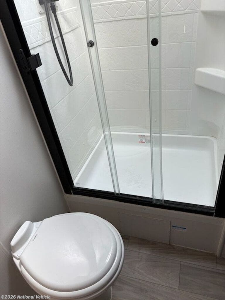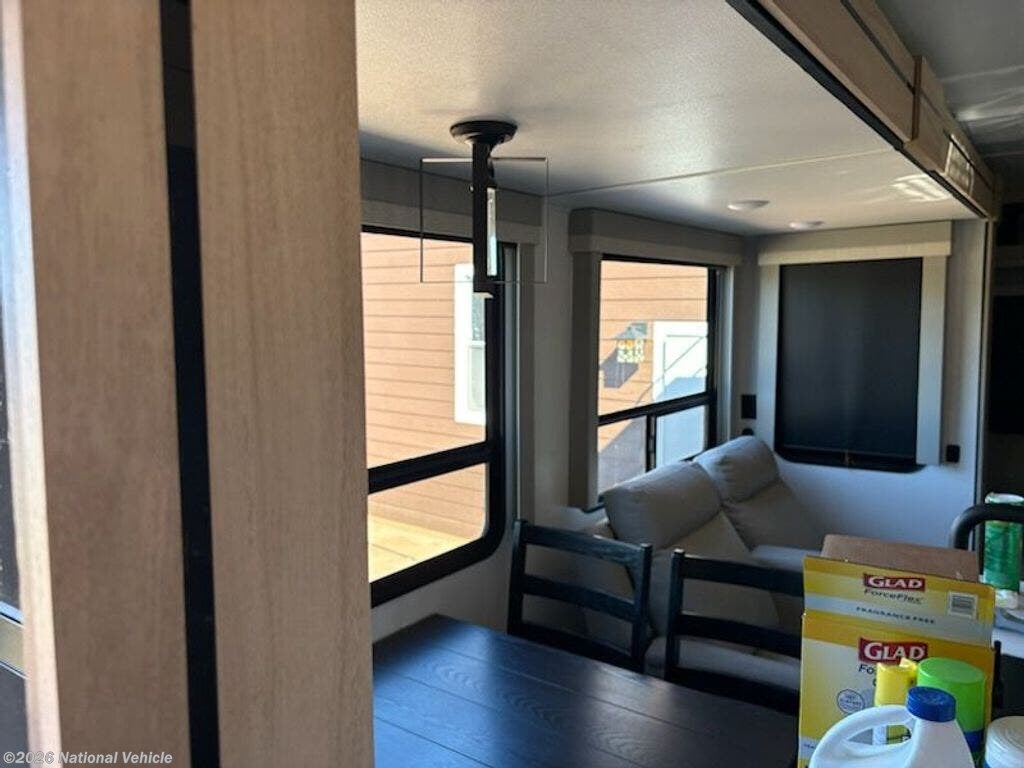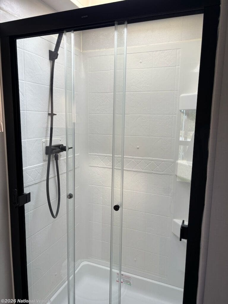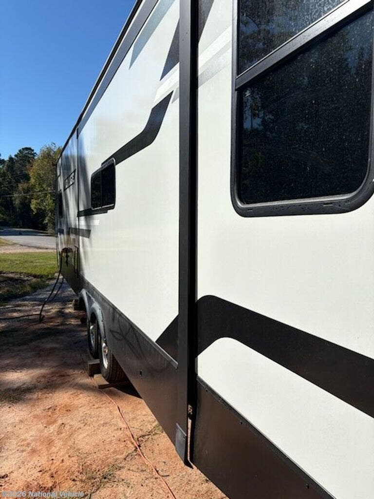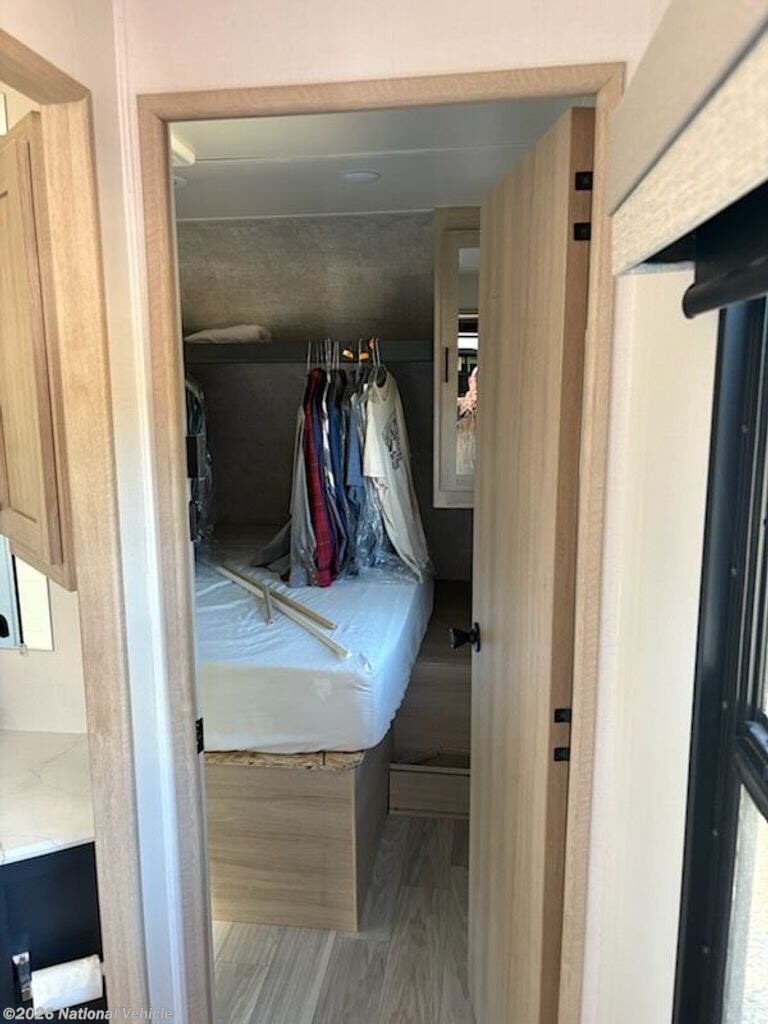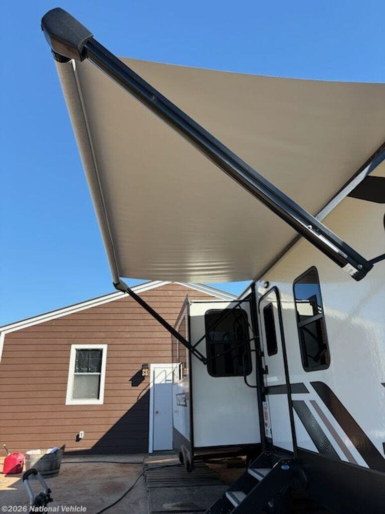 2023 Model was purchased in June 2024 and set up under cover for 15 months. Wired for WiFi, 2 TVs, Ventless clothes washer, sleeps 4, like new, everything works!!!