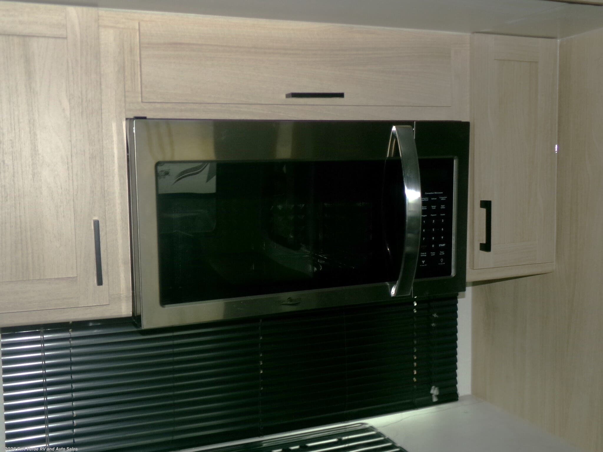 The kitchen is complete with a cook top, oven, microwave and a very roomy refrigerator.