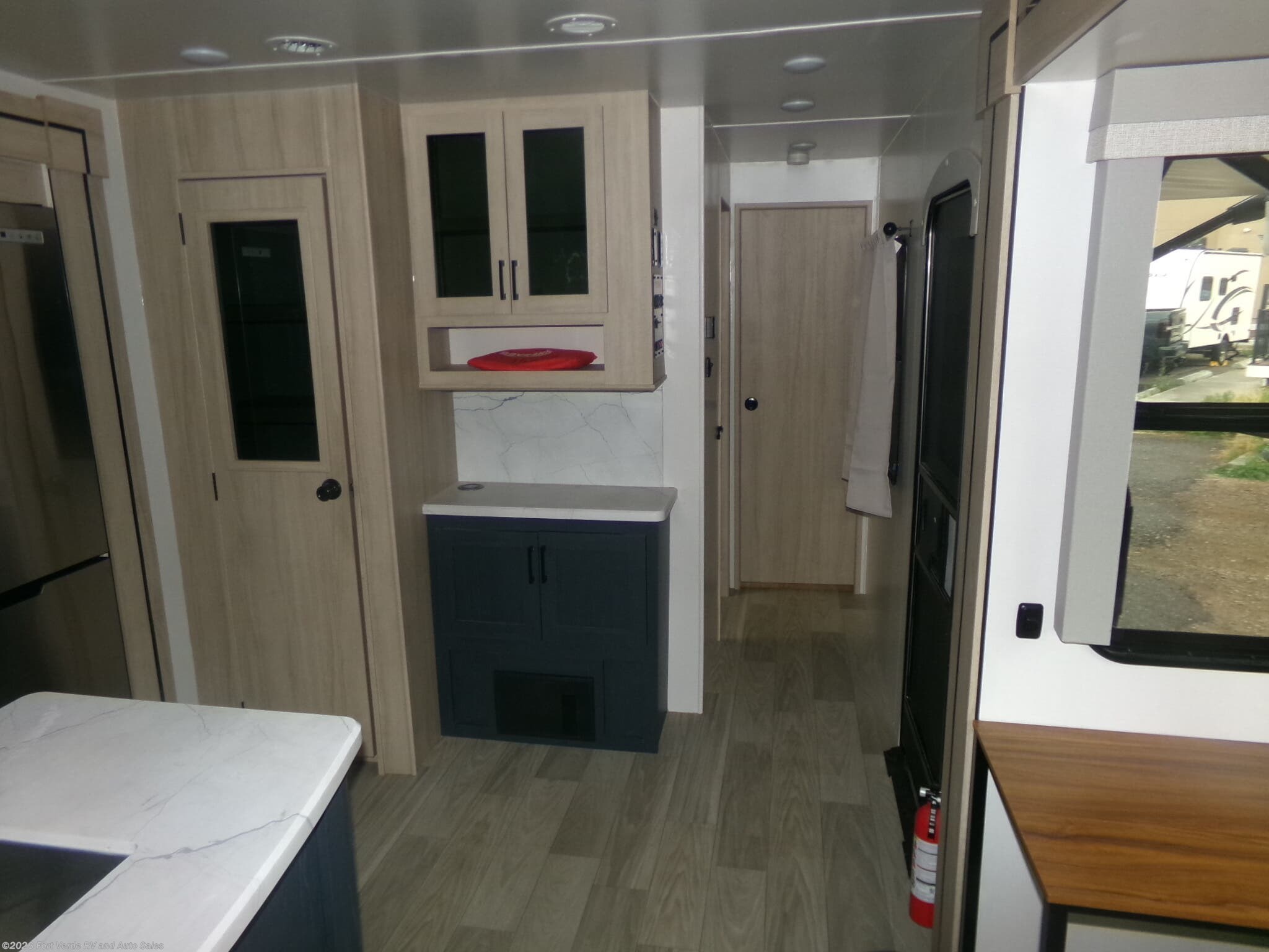 This trailer is 33 feet long and has two slide outs, so it is very roomy inside. The arrangement of the interior is very smart, which contributes to the spaciousness.