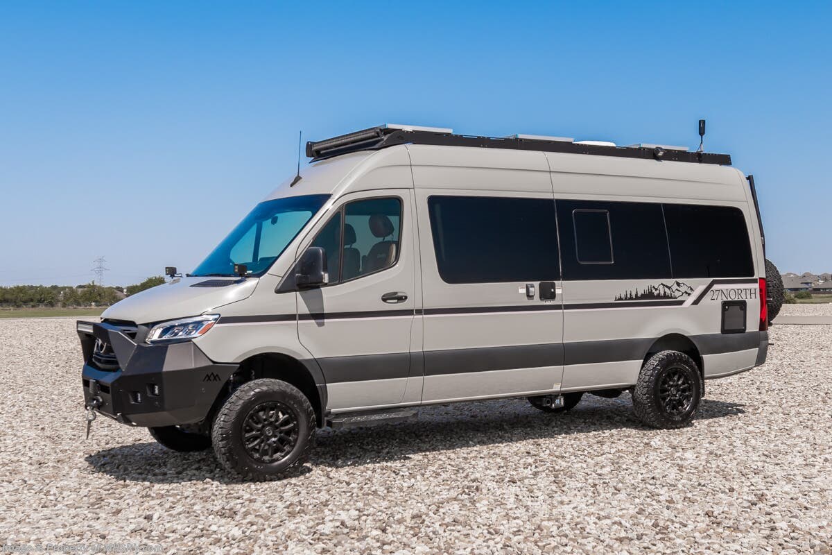Used 27North RV for sale – 2024 27North Venture 170 is approximately 24' 9” feet in length, 25,813 miles and features aluminum wheels, full body paint, Mercedes-Benz chassis, Mercedes-Benz diesel engine, tilt/telescoping steering wheel, smart wheel, power pedals, driver door, trip tek, GPS, keyless entry, power windows, power door locks, cruise control, patio awning, LED running lights, water filtration system, exterior shower, ladder, solar, all electric coach, dual pane windows and much more. For more details on this unit, our full inventory, brochures, window stickers, videos, photos, and customer reviews, visit or call 800-335-6054 for the Texas location or 334-288-0331 for our Alabama location. At Motor Home Specialist, we DO NOT charge any prep or orientation fees like you will find at other dealerships. Read Thousands upon Thousands of 5-Star Reviews at and See What They Had to Say About Their Experience at Motor Home Specialist. WHY PAY MORE? WHY SETTLE FOR LESS?