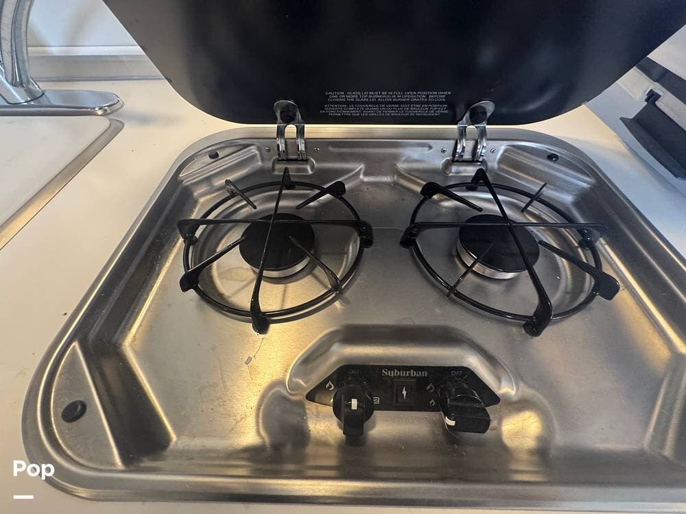 Everything is within arm's reach, which makes cooking feel more like working in a small boat galley than a traditional kitchen. It's practical, not expansive-but fully capable for life on the road.
