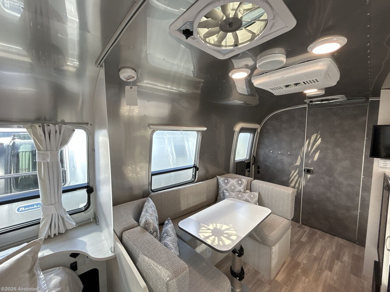 The lightweight, easy-to-maneuver Bambi travel trailer by Airstream is your ticket to outdoor fun and adventure. The panoramic front windows with blackout shades will provide natural lighting during the day, and privacy at night, and the seamless vinyl flooring will be easy to keep clean. Each model includes an efficient A/C with a heat strip, roll top overhead cabinets, and Performatex dinette cushions that are stain resistant. You will appreciate the 12V USB-A and USB-C ports to keep your devices charged, and the 24" 12V HDTV will provide entertainment when the weather isn't cooperating. The Bambi travel trailers also include a powered hitch jack with a light, roller shades, and an optional solar charging system for off-grid capabilities!