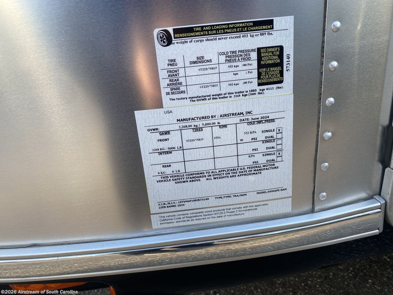 2024 Airstream Bambi 22FB Specifications