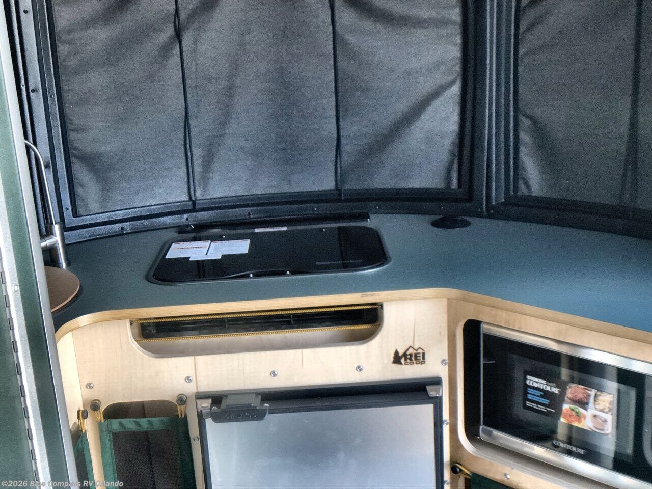 Looking for three extra inches of road clearance in an aerodynamic and easy to tow trailer? This 16X includes Goodyear all-terrain tires, solar front window protection, and stainless steel rock guards for protection against road debris. You can sleep two on the split benches or convert the half-bed on one side and the full bed-size that spans the back of the trailer. The two tables with benches allow you to dine with seating for five, surf the web, read a book and you can store the tables under the cushions. Get cleaned up in the wet bath complete with a shower, toilet and sink. And the cook will love the views while using the two-burner gas stove, sink and refrigerator. This Basecamp also offers front panoramic windows and a rear hatch allowing you to take your snowboards, skis, paddleboards and/or kayaks.