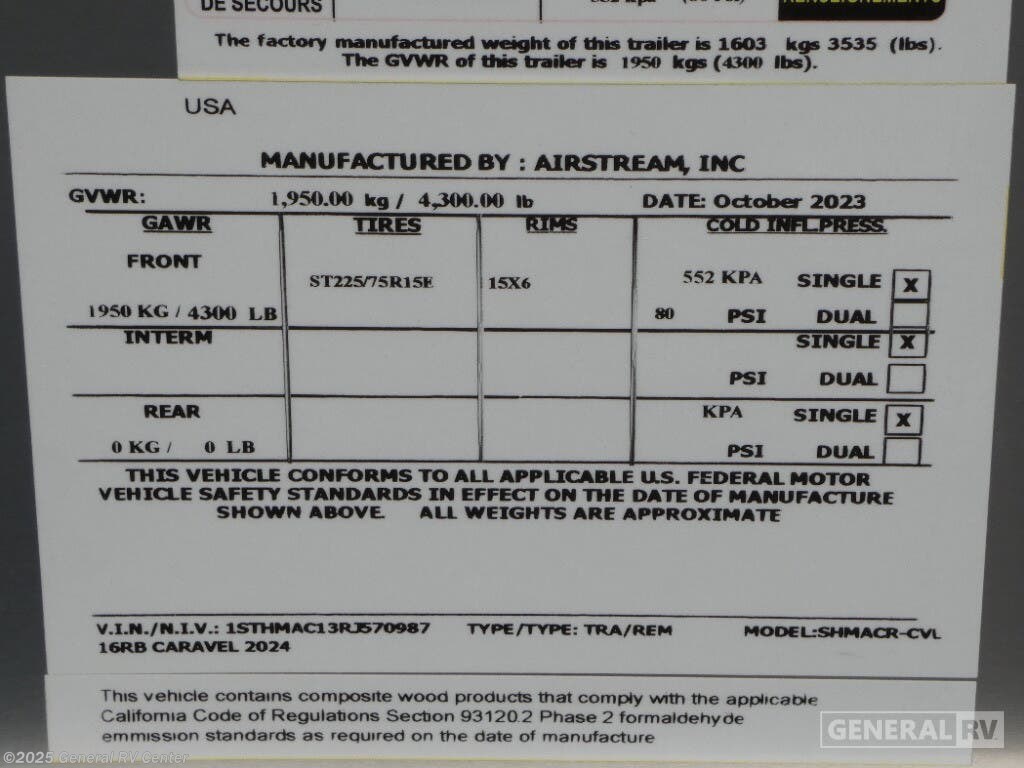 Request More Info on this 2024 Airstream Caravel 16RB Offered for sale by General RV Center