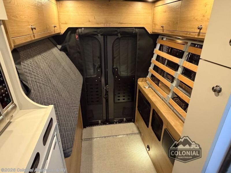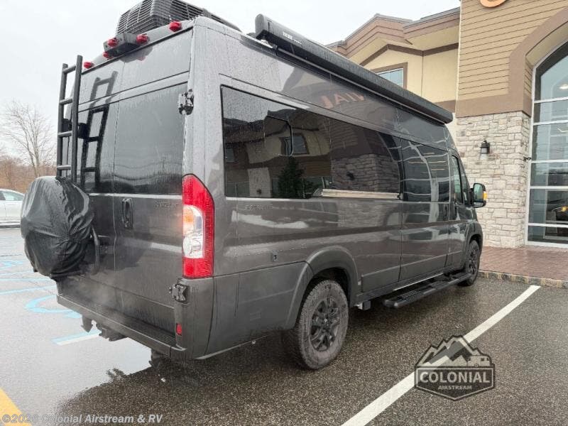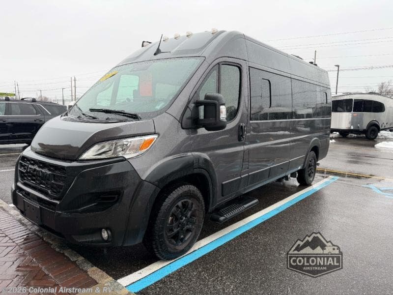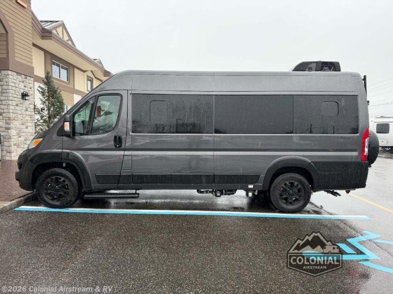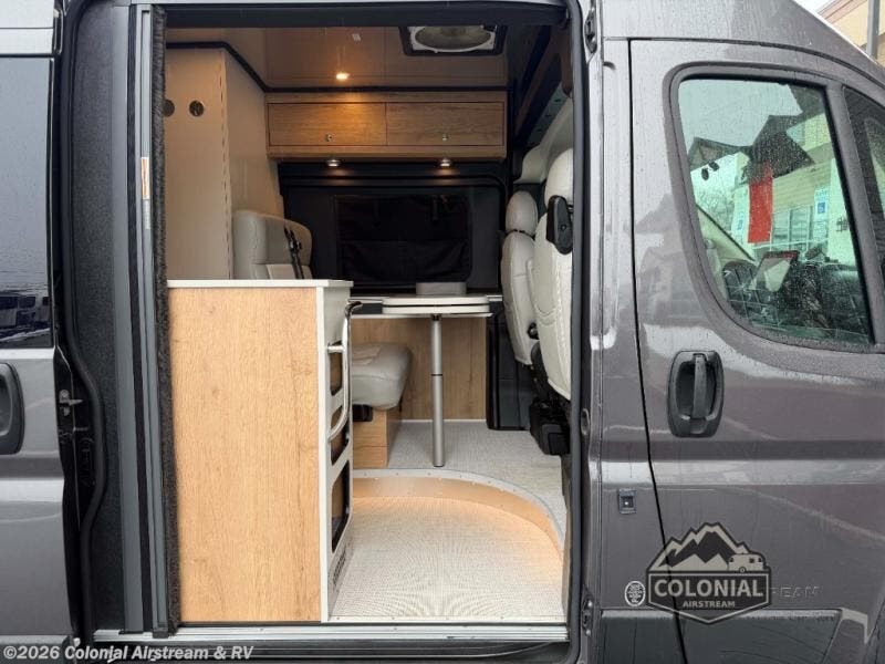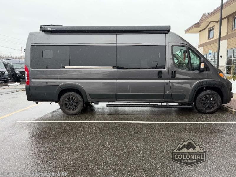 The Airstream Rangeline offers complete comfort and flexibility with great living spaces, flexible storage throughout, and all the amenities you need to enjoy travel. Its sleek design with painted grille, two interior color choices with Warm River Oak cabinets and drawers, and gray laminate countertops allows you to travel in style. The Ram ProMaster 3500 chassis offers front-wheel drive and 276 horsepower, with an efficient gas-powered heat and hot water system plus SumoSprings and SuperSprings for an overall better driving experience. Rear storage includes MOLLE panels on the rear doors to hang all your gear, and space under the bed for even more cargo. The optional pop-top roof has three screen windows and another bed, expanding sleeping capacity to four people.